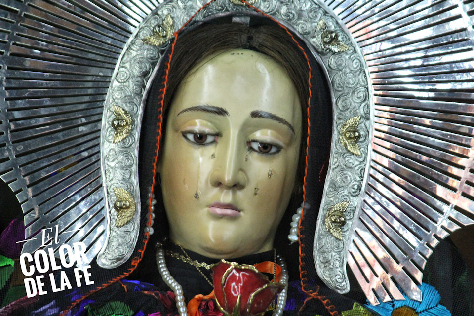 La Señora de rostro triste y mirada piadosa representa a la Virgen María en su soledad, después de haber sepultado a su hijo Jesucristo la tarde del viernes santo, y con las manos juntas en actitud suplicante espera el momento glorioso de la resurrección, al mismo tiempo que intercede por sus hijos, aquellos que con el corazón lleno de confianza acuden a Ella para el remedio de sus tristezas y el consuelo de su alma.