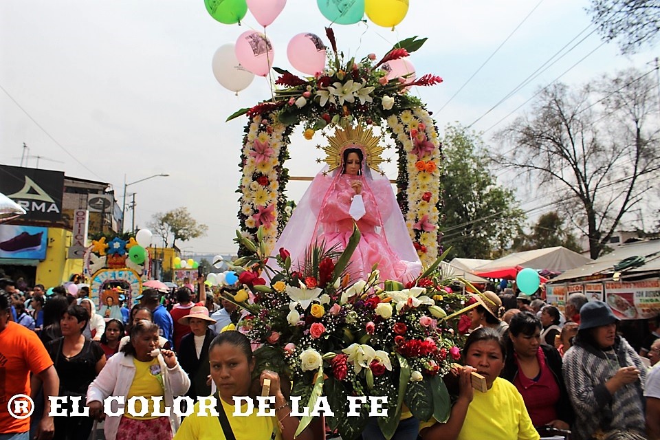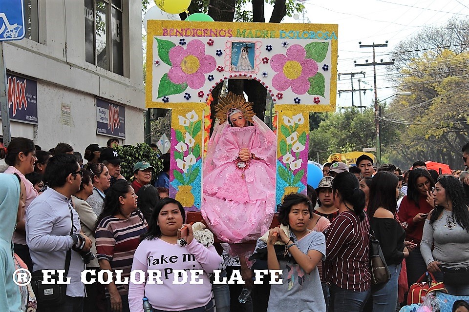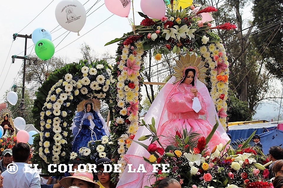 Al llegar al santuario, los fieles de Cuatro Barrios colocaron una portada enflorada a la entrada del templo, cumpliendo así con su promesa anual y después de participar en la celebración litúrgica a los pies de la Virgen de los Dolores, hicieron la quema del barco y del avión, que de acuerdo con la Sociedad del Barco y el Avión del barrio de San Esteban, es un homenaje a la participación del Escuadrón 201 durante la Segunda Guerra Mundial.