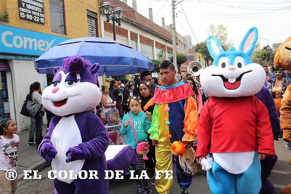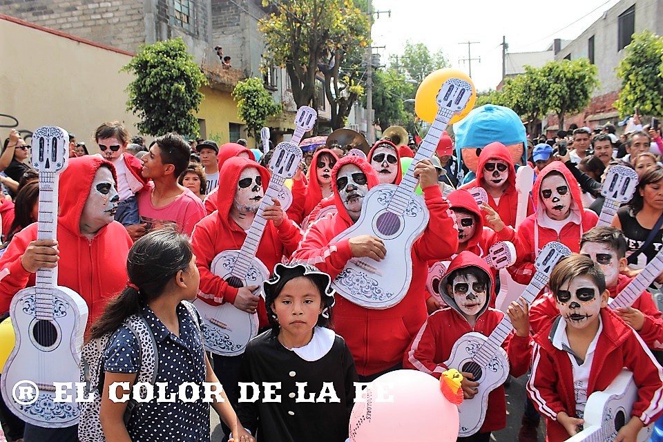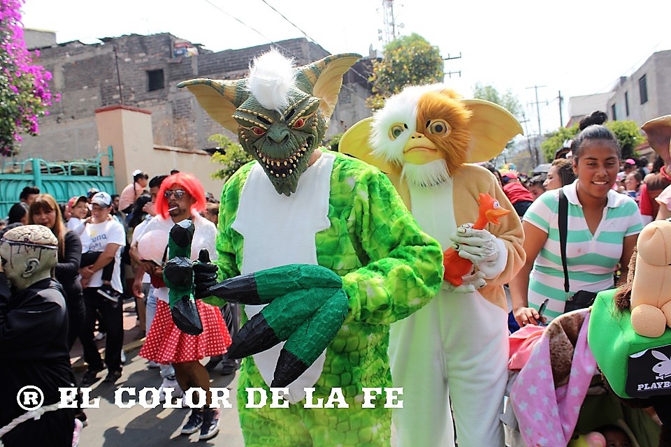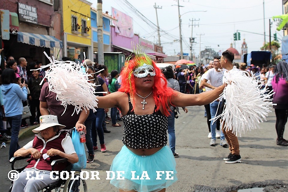 Posteriormente continuó la caminata de regreso, encabezada por las diferentes imágenes de la Virgen de los Dolores que fueron transportadas en andas enfloradas hacia sus respectivos barrios. Detrás de ellas, una serie de personajes bailaban al son de la banda, eran las comparsas de «huehuenches» o «huehuenchones» formadas en su mayoría por hombres disfrazados de mujeres, monstruos, animales o personajes de la política que divierten a los asistentes con sus irreverencias y satirizando la vida cotidiana. A ellos se suman algunos personajes de caricaturas populares, películas y uno que otro alebrije que salió de la imaginación de su creador, representando la dualidad entre lo bueno y lo malo.
