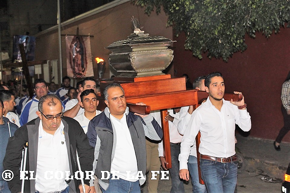 Una vez entrada la noche, partieron nuevamente dos contingentes, uno del cerro de Cristo Rey y otro más de la Calzada de los Mártires, ambos en dirección al Panteón Municipal, lugar donde «Joselito» fue ejecutado y sepultado por sus verdugos. Al llegar a la casa donde nació el Niño Mártir, ubicada en la calle Tepeyac, ambas procesiones se encontraron para recibir los restos reliquia del «pequeño cristero» y continuar el recorrido por las calles que 90 años antes, José Sánchez del Río recorriera con los pies ensangrentados después de la tortura a la que fue sometido.