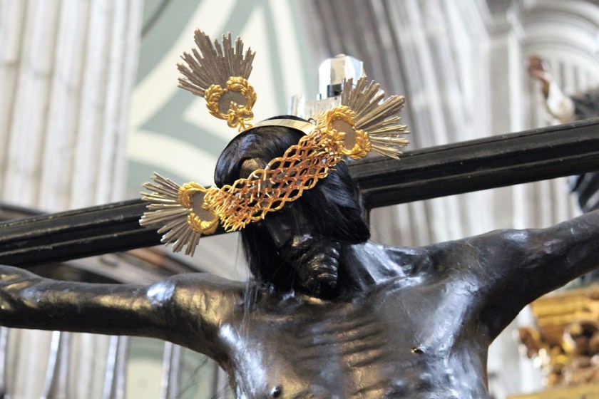Aquella tarde, el sacerdote oficiaba la Santa Misa sin imaginar lo que sucedería. A lo lejos, el asesino observaba detenidamente para asegurarse que se cumpliera su objetivo y al momento en que el clérigo se disponía a besar la imagen, el Cristo encogió sus pies y al instante se tornó de color negro, absorbiendo aquel poderoso veneno y la maldad que había en el corazón de aquel hombre, salvando la vida del sacerdote.