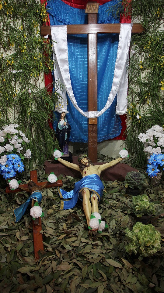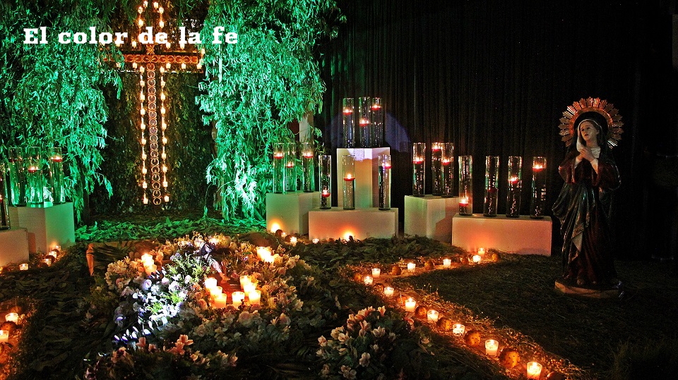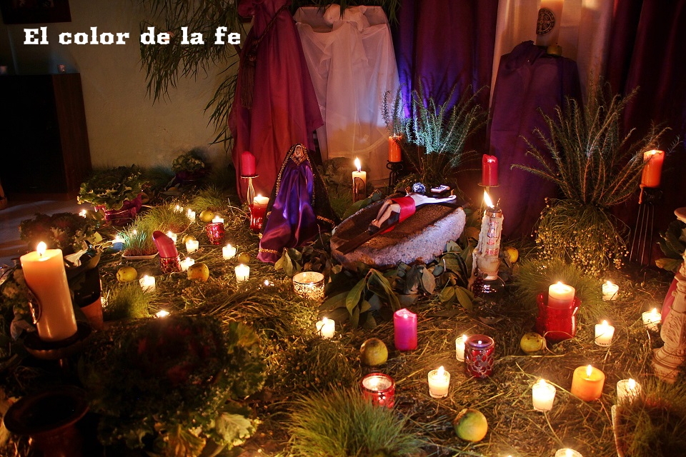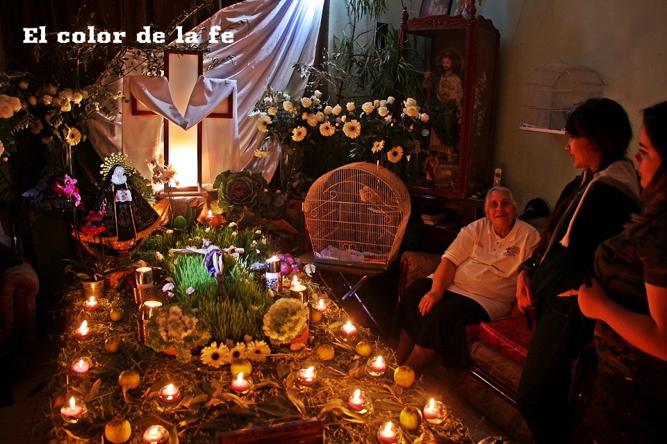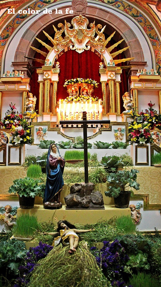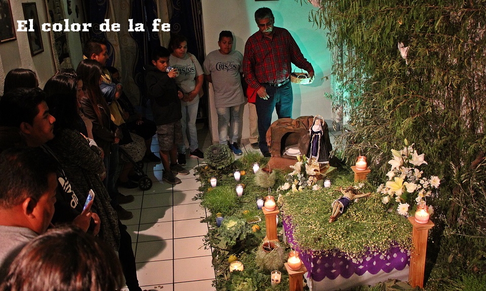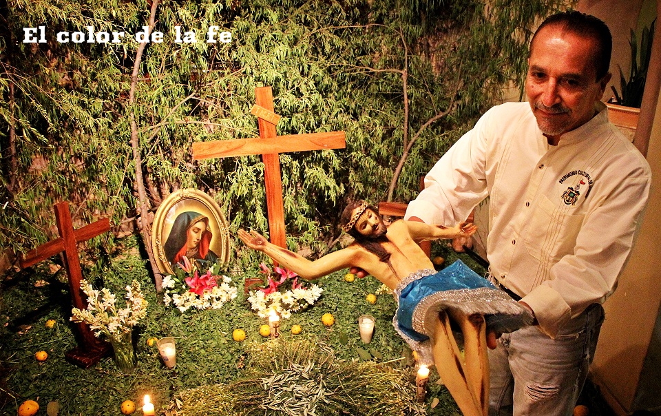 El Viernes Santo por la mañana comienza la tarea de preparar el altar dónde será tendido el Cristo. La capilla ardiente es decorada según el gusto y posibilidades, lo que nos permite encontrar altares de todo tipo, los cuales se abren a los visitantes a las tres de la tarde. Los elementos que no deben faltar, son ramas de laurel de cerro, trébol y alfalfa con las que se elabora un tapete en toda el área, también se unen a la decoración ramas de sabino, sauz y jaral para representar el huerto de los olivos, cubriendo muros y en algunos casos el techo. Sobresalen entre la decoración naranjas agrias decoradas con clavos de olor (elemento que usaban los indígenas para disimular el olor de los cuerpos en descomposición), germinados de trigo, que son sembrados el “Viernes de Lázaro” dando sentido a que al brotar, nos recuerda la resurrección y la aromática manzanilla que purifica el ambiente junto al humo del copal. Entre el altar, puede observarse la imagen de «La Dolorosa», la Virgen Madre que se encuentra triste por la pérdida de su hijo, siendo acompañada por palomas habaneras, las cuales con su triste canto dan consuelo a la Virgen en su soledad. La profusión de velas y veladoras depende del gusto, siendo de preferencia treinta y tres veladoras por la edad en que murió Cristo y en grupo de doce, por los doce apóstoles que acompañaron a Jesús y 5 cirios por las llagas de Cristo.