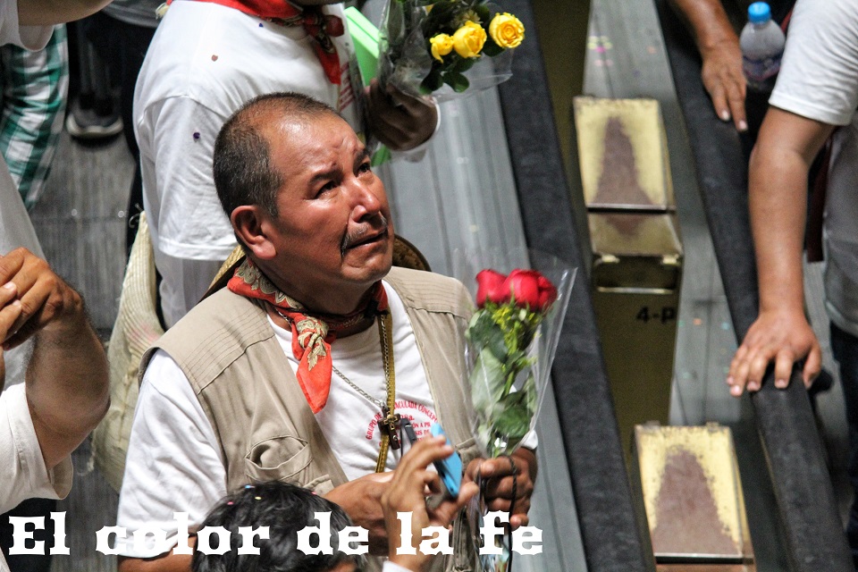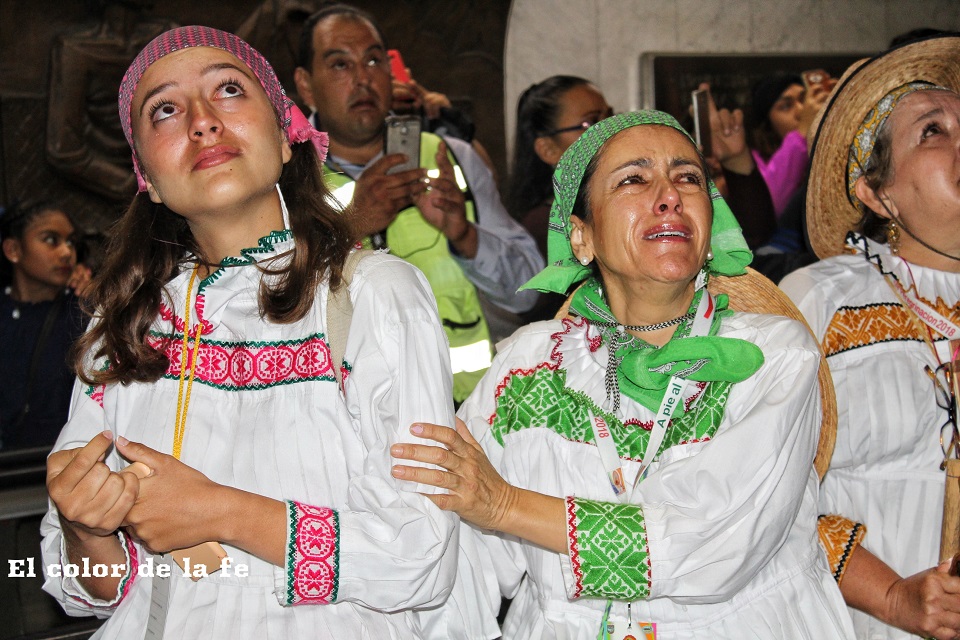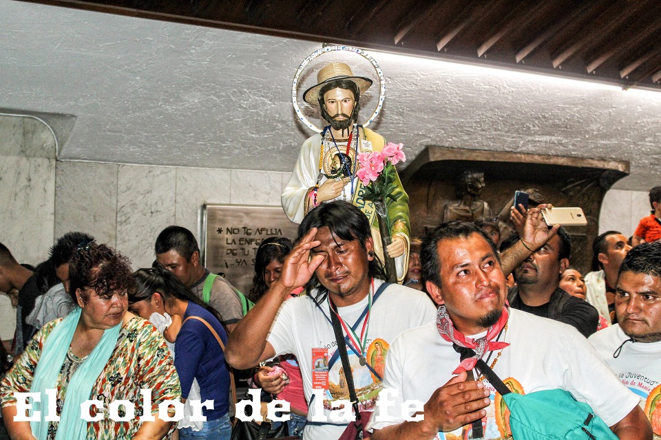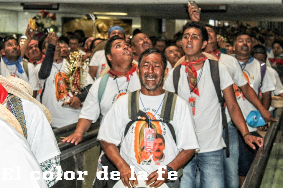 Poco después de la 1:00 de la tarde, el contingente masculino ingresó a la Basílica. La voz de los varones retumbaba en el santuario, pues emocionados entonaban cantos a la Guadalupana, muchos de ellos de la mano de sus hijos e incluso hubo grupos de niños liderados por jóvenes que cantaban y bailaban para honrar a la Virgen. El cansancio era evidente, muchos de ellos llegaron descalzos y con los pies lastimados, pero felices de encontrarse una vez más a los pies de la Guadalupana.
