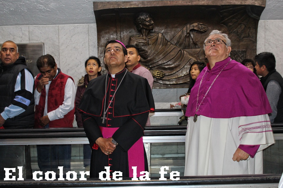 Con lágrimas en los ojos, los peregrinos se incorporaron al atrio para encontrarse con sus familias y participar en la Santa Misa, en la que el Obispo Armendáriz llamó a los fieles a mirar y dejarse mirar por Ella: «Al pasar nuevamente hoy bajo la imagen bendita de Nuestra Señora de Guadalupe y contemplar esa mirada tierna de madre amorosa, se renueva en nosotros el amor y la devoción a la Señora del Cielo, a la Morenita del Tepeyac, y así, movidos por esos sentimientos queremos volver a nuestros hogares para continuar con nuestra vida y con nuestro testimonio cristiano».