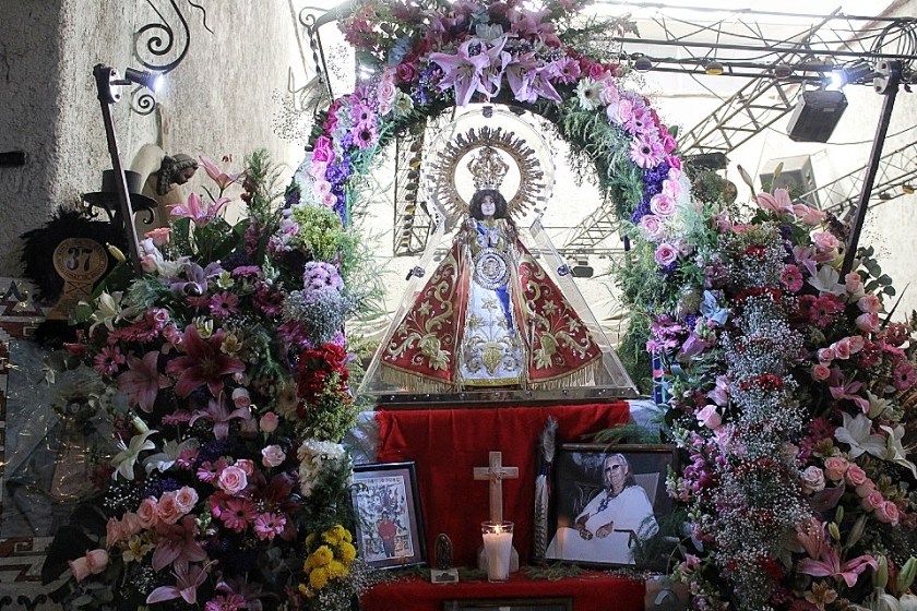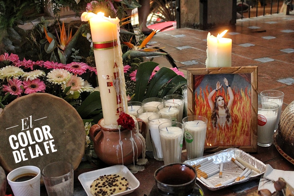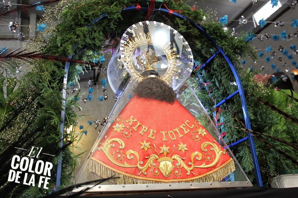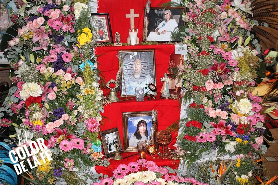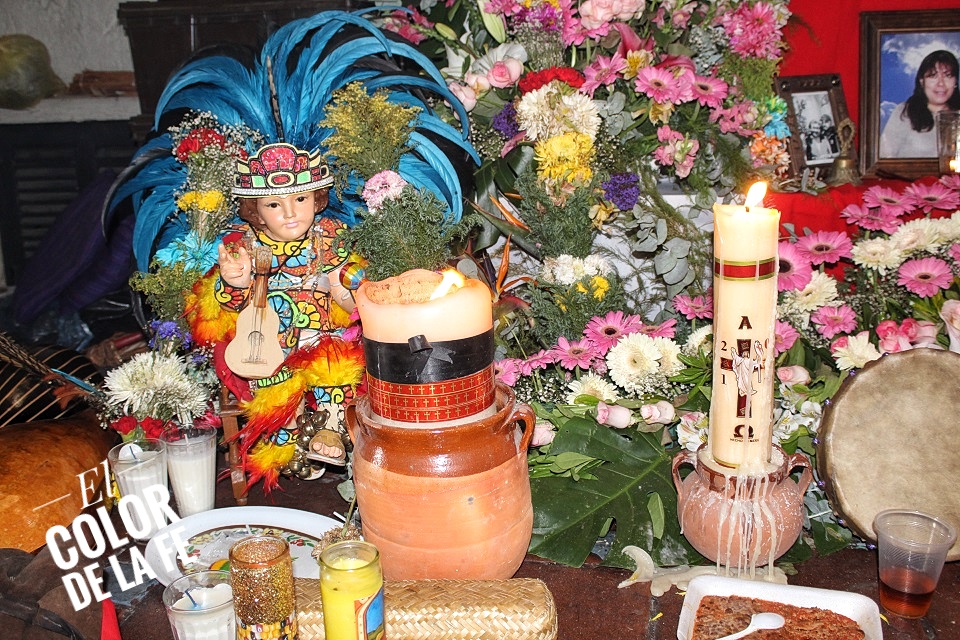 Como si fuera una representación del paraíso, al centro del altar, bajo la imagen de la Virgen, se colocan las fotografías de familiares y amigos fallecidos que pertenecieron a la familia de danza y que ya gozan de la presencia de Dios y de la Virgen María en el cielo, mientras que al pie del altar se dedica un espacio a la ánimas benditas que esperan el momento de salir del purgatorio para ser llevadas a la presencia de Dios. También se colocan instrumentos musicales, copal, plumas y caracoles que de acuerdo a la cosmología indígena evocan a los cuatro elementos que dan vida, además de ofrendar los alimentos que van a consumir:
