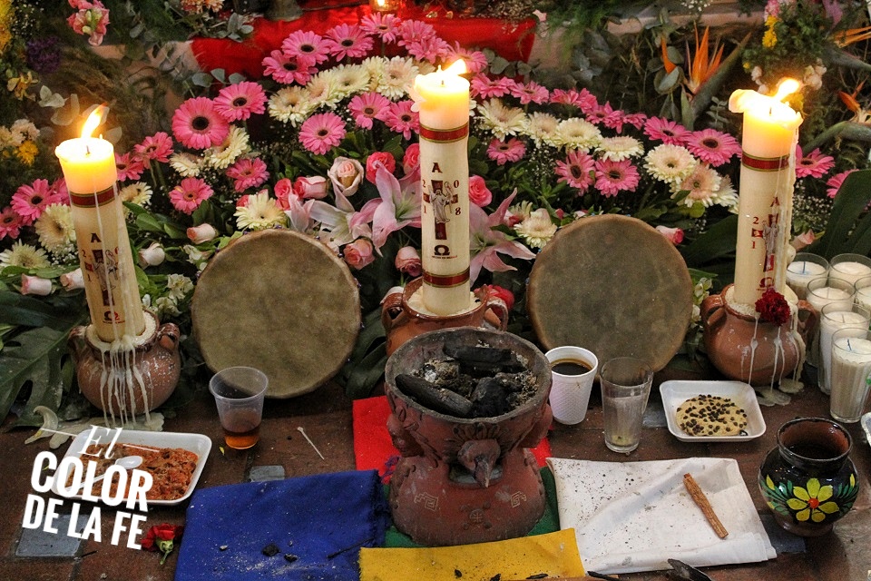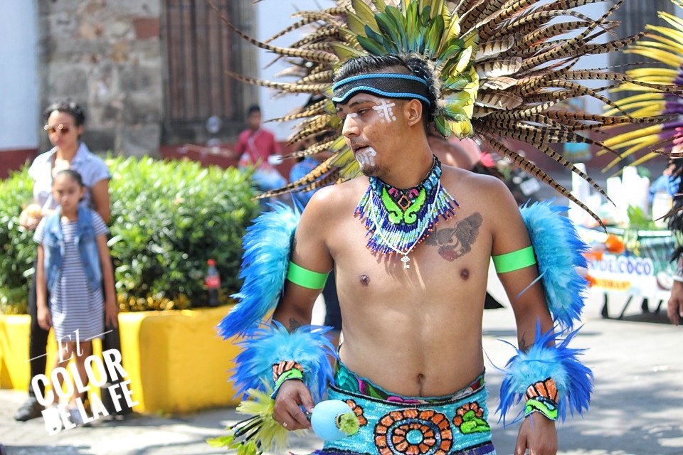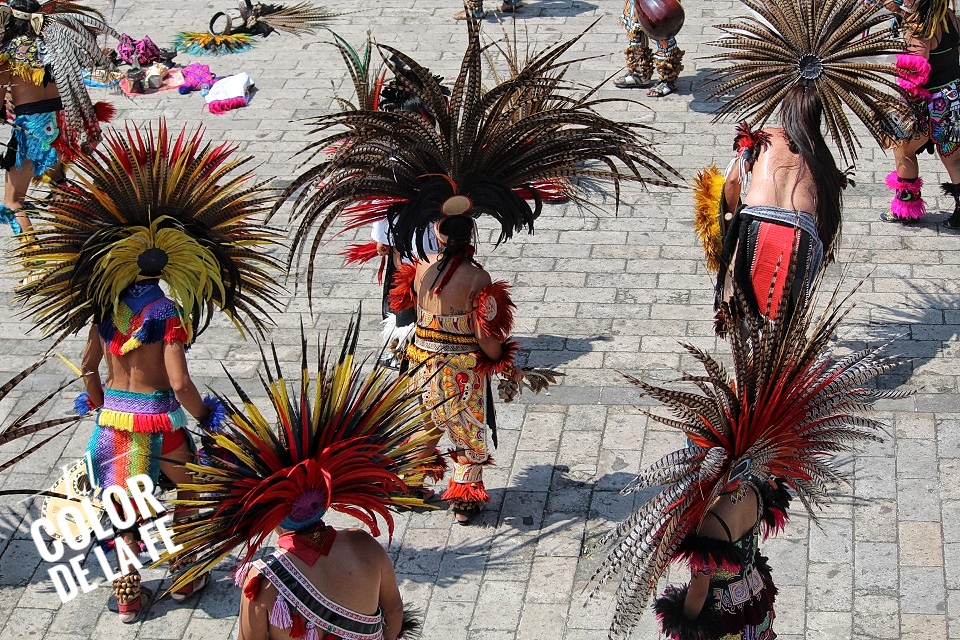 » Ofrendamos la comida para que nunca nos falte y siempre tengamos algo que comer, el agua es un elemento que todo ser vivo necesita para vivir. Está el viento representado por el caracol, el soplo divino, el primer aliento de vida que recibimos cuando nacemos… También tenemos instrumentos musicales como chihuandas, que es una guitarra con una concha de armadillo y nació con el mestizaje porque cuando llegaron los españoles la danza se hizo conchera, se hizo más religiosa y se adoptaron instrumentos. Eso es lo que nos mantuvo vivos como danzantes, ahí está nuestra raíz y gracias a eso tenemos todo este conocimiento».