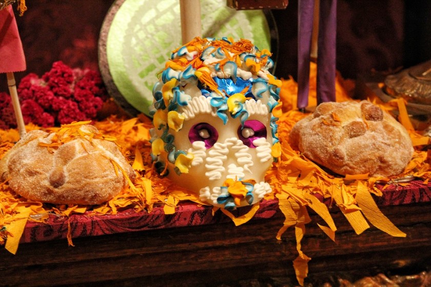En casa, en las entradas, en los comedores o en el altar doméstico se colocan exquisitas ofredas de pan, fruta, dulces típicos como calaveritas de azúcar, chocolate o amaranto, tamales y por supuesto la comida favorita del difunto, pues hay que recibirlo como se merece. No puede faltar el agua que mitigue su sed y una que otra bebida fuerte que disfrutó en vida, elementos que se purifican con el aroma del copal y se combina con el aroma de las flores y la luz de las ceras, creando un ambiente místico en los hogares que nos permite sentir la presencia de las ánimas que nos visitan.