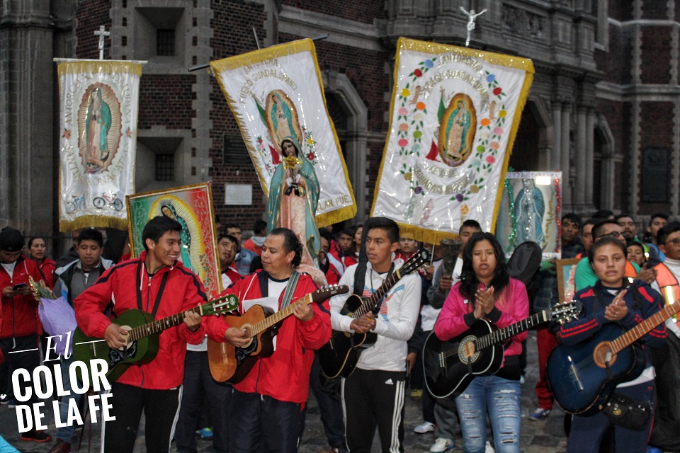 «Buenos días paloma blanca», «La Guadalupana», «Mi Virgen Bella», «Del cielo bajó» son algunos de los cantos y alabanzas que los grupos, integrados en su mayoría por jóvenes, entonan en las puertas de la Basílica; algunos con lágrimas en los ojos, pues las melodías llegan a lo más profundo del corazón, descubriendo los sentimientos más sinceros de quienes las entonan, entregando sus peticiones y agradecimientos en forma de canción.