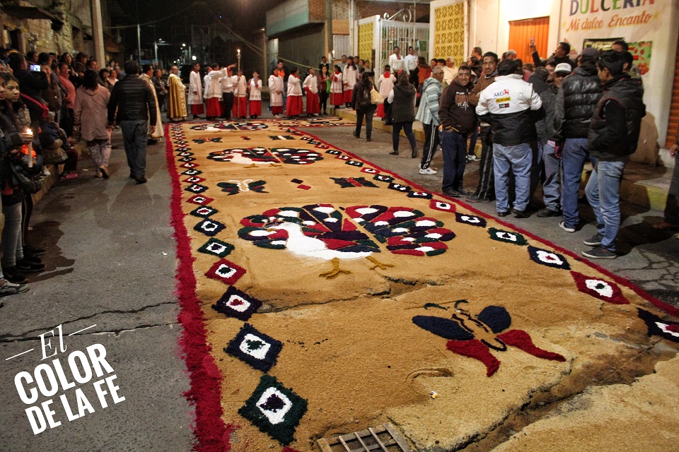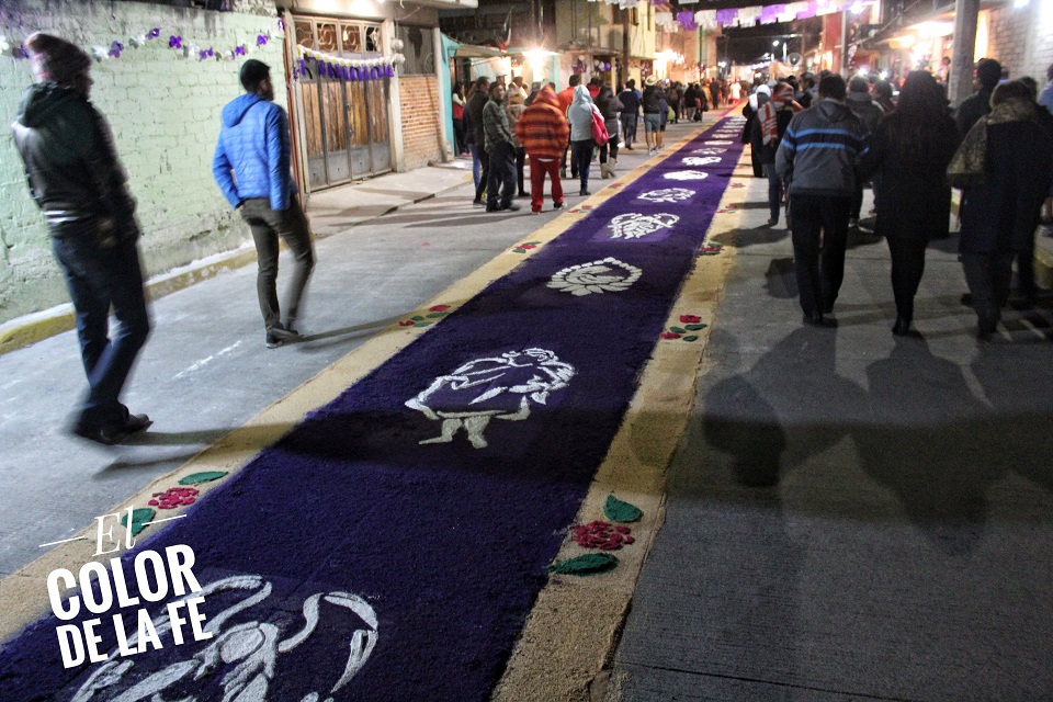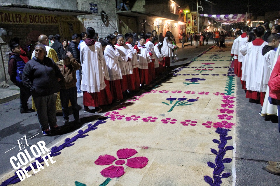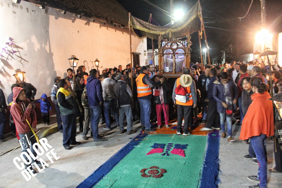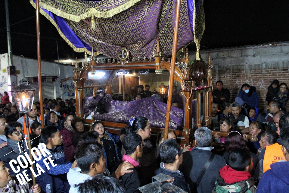 Las calles fueron adornadas de blanco y morado, junto con tapetes de aserrín y arreglos de globos que simulaban la vid. Al paso del Señor se encendían cascadas de pirotecnia y se lanzaban gruesas de cohetes. Por momentos, la procesión detuvo su paso para permitir que los enfermos se acercaran a la sagrada imagen trasladada bajo palio y en hombros de mujeres y hombres que voluntariamente se ofrecían a cargar al Señor en su recorrido por la Ermita de la Santa Cruz, la capilla de Santo Domingo, San Isidro Labrador y San Juan Bautista, para concluir el recorrido en la Parroquia de la Asunción.