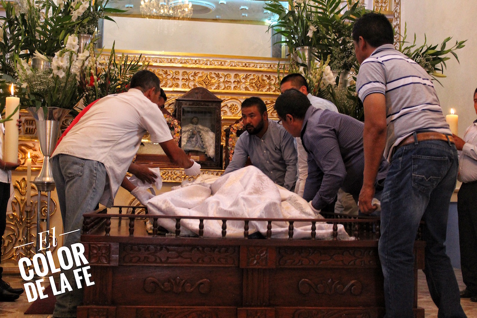 «El milagro más grande que se le adjudica es que él se renovó solito, porque cuando lo trajeron el pueblo quedó descontento, porque no era como el que tenían: moreno. Entonces solito se fue renovando… era igual pero el tono del rostro no era el que conocía la población. Contaba mi abuela que convocaron al pueblo para recibirlo y cuando lo vieron, el pueblo quedó inconforme porque ya no era como el que tenían, pero el solito se fue renovando, por eso se le conoce como el Santo Entierro Renovado de Tepopula», cuenta Amado.