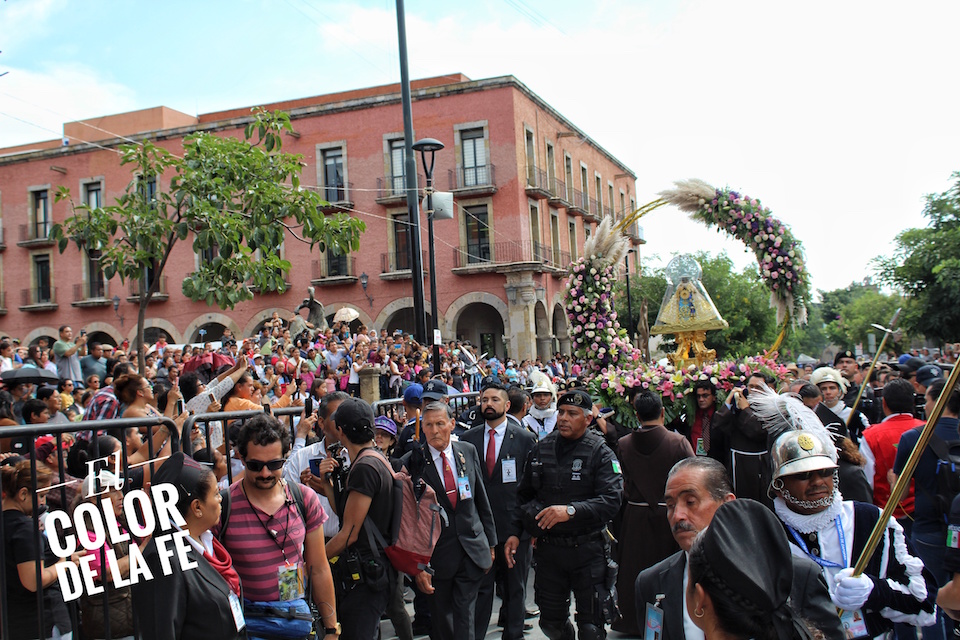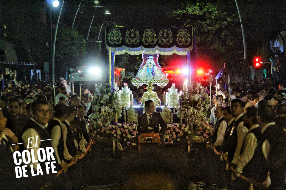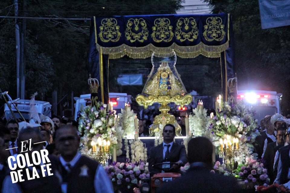 Miles de danzantes encabezaron la procesión, creando un ambiente de color y misticismo, mientras que los músicos de diferentes bandas, organizados por instrumento, entonaban al unísono alabanzas a María. Una calandria adornada con una monumental corona de gardenias perfumaba el camino por el que habría de pasar la Generala, mientras las Guadias de Honor abrían paso con su marcha al carruaje que transportaba la bendita imagen de la Virgen. A la orilla del camino la esperaban sus fieles, algunos en sillas de ruedas, esperando la bendición de su Reina. Al verla era imposible contener las lágrimas y un grito de júbilo estallaba al paso de la «chaparrita», al tiempo que las oraciones y súplicas se elevaban al cielo.
