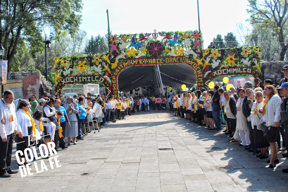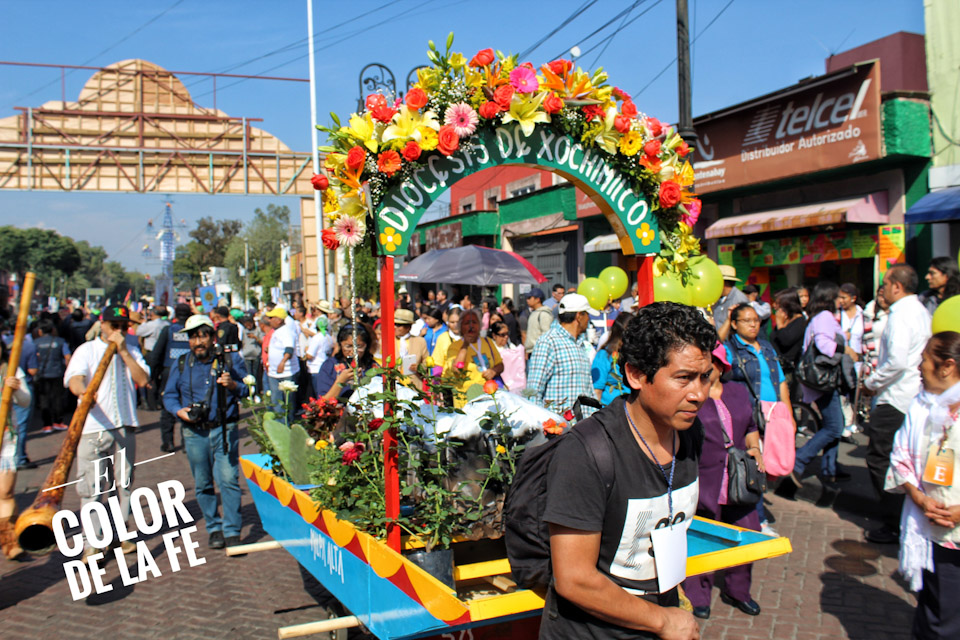 Poco después de las 9:00 de la mañana, el Obispo Don Andrés Vargas Peña, acompañado por el Nuncio Apostólico en México, Mons. Franco Coppola y el Arzobispo Primado de México, Mons. Carlos Aguiar Retes, fue recibido en la Rotonda de los Personajes Ilustres por el pueblo encabezado por el Alcalde de Xochimilco José Carlos Acosta, y a modo de bienvenida se quemó un castillo con diferentes figuras hechas por artesanos. A su paso por el corredor de Guadalupe I. Ramírez, el Obispo Don Andrés recibió el saludo de los representantes de las comunidades indígenas de los pueblos originarios.