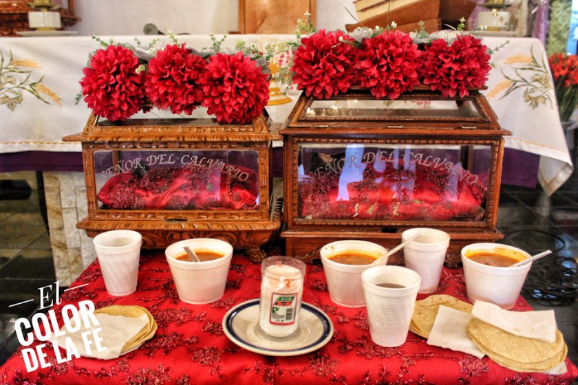 Una de las mayordomías principales es la del Señor del Calvario, con quienes los mayores de San Antonio se coordinan para la visita del Señor del Calvario durante la fiesta como lo marca la tradición del pueblo, pues el 16 de enero, vísperas de la fiesta de San Antonio Abad, acuden al santuario para el cambio de colchita del Señor y por la tarde trasladarlo en procesión a la capilla de San Antonio, donde permanece hasta la octava de la fiesta.