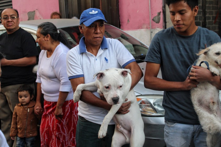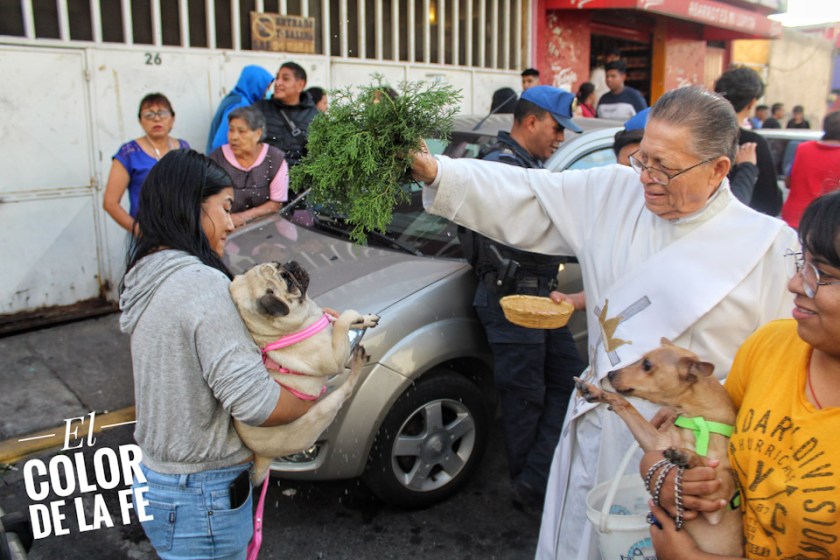 Perros, gatos, peces, gallinas, tortugas, roedores, canarios, pericos, caballos y uno que otro animal exótico, llegan a la capilla en brazos de sus dueños para recibir la bendición, un momento alegre en el que se ríe y se comparte de las travesuras de los animalitos para los que se pide, incluso su protección, tal es el caso de una señora de Coyoacán que desde hace ocho años lleva a su perrito, el cual se perdió unos días antes de la fiesta, y tras invocar la ayuda de San Antonio Abad, el perrito apareció y regresó con su dueña un 17 de enero, por lo que cada año lo llevan a recibir la bendición y agradecer la presencia de su peludo amigo.