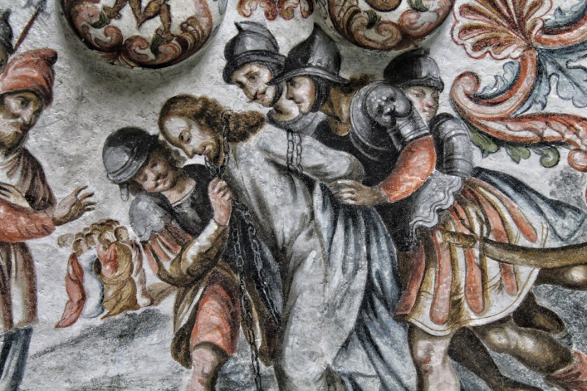 Lleno de angustia oraba con más insistencia, y sudó como gruesas gotas de sangre, que corrían hasta la tierra, luego se apoderaron de Él y le ataron.