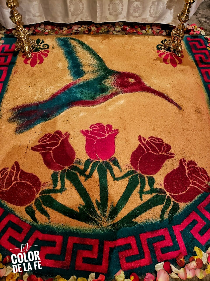 Por su parte, integrantes de la familia Dueñas realizaron algunos tapetes de aserrín dentro de la parroquia, representando en ellos el rostro del Señor de la Misericordia y dos colibríes, los cuales están relacionados con la toponimia del pueblo. Algunas otras familias se encargaron de donar las flores y las ceras escamadas que adornaron el altar principal. La tarde del sábado 5 de septiembre, integrantes de la Comisión de Festejos dieron la bienvenida a algunos representantes de las mayordomías que se encargan de organizar las visitas de la imagen del Señor.