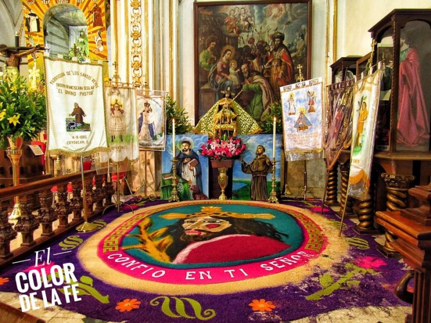 En la nave derecha del templo, se colocó un altar donde fue entronizada la imagen del Divino Pastor junto a los estandartes de las diez comunidades que anualmente son visitadas por la imagen del Chaparrito: San Sebastián Xoco, San Sebastián Axotla, San Francisco Hueytitlan, San Lucas Tlaxopa, Niño Jesús Tehuitzco, San Pablo Tepetlapa, Santa Úrsula Coapa, el Señor de los Milagros de la colonia Ajusco, Pedregal de Santo Domingo y La Candelaria Chinampan.