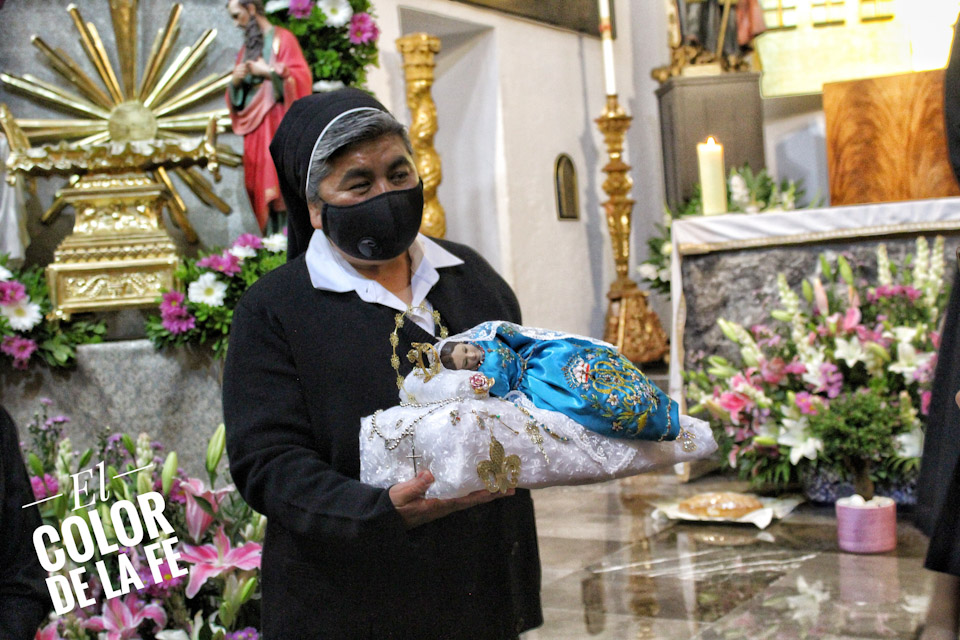 Al final de la celebración, en un ambiente de austeridad por la contingencia sanitaria, la imagen de la Divina Infantita fue trasladada a la provincia Federico Salvador, en Matamoros número 100, donde fue recibida entre alabanzas, vivas y oraciones.