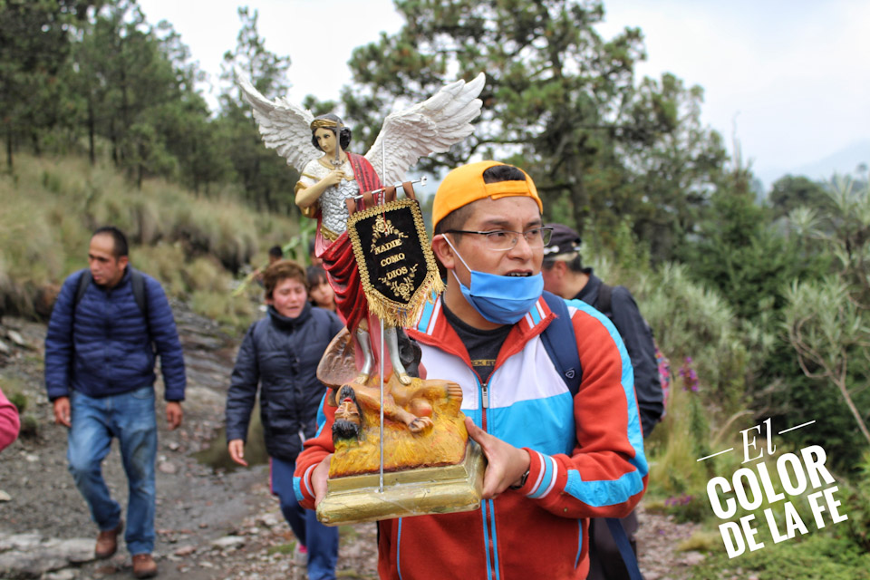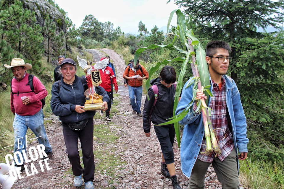 Tras cinco horas de camino, soportando el frío y el cansancio, los peregrinos llegan a la ermita de San Miguel para elevar su oración a San Miguel Arcángel y poner en sus manos sus necesidades, algunos dejan ofrendas de maíz , frutas y verduras recordando el origen agrícola del pueblo de Cuajimalpa y tras pasar un momento en la cumbre, empieza el descenso de regreso a casa.
