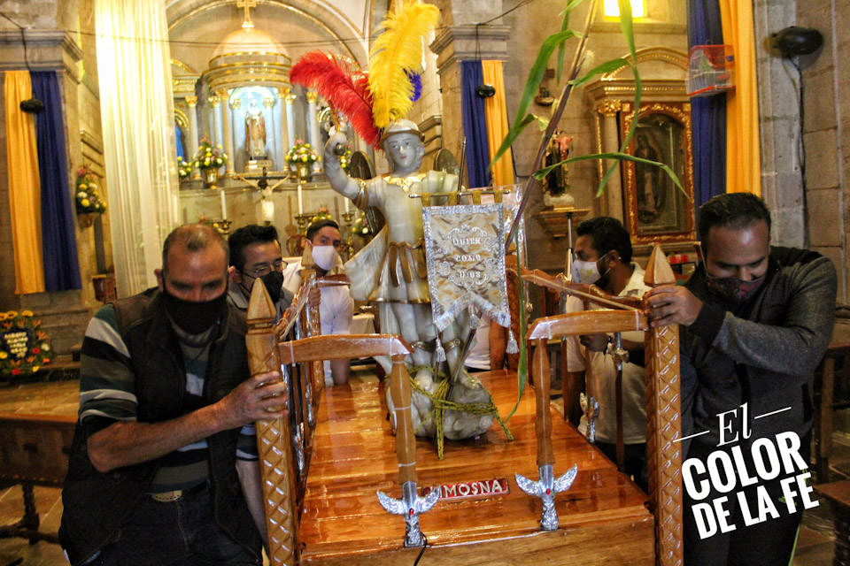 Con esta peregrinación inician los preparativos de la fiesta que se traslada al domingo más cercano al 29 de septiembre. Los festejos inician con la bajada de San Miguel Arcángel de su nicho en la Parroquia de San Pedro, para ser colocado a un costado del presbiterio e iniciar el novenario de preparación en el que nueve familias reciben en sus casas la imagen peregrina de San Miguel para ofrecer la Coronilla o Rosario de los Ángeles, y al final se expone una breve catequesis sobre la devoción y el significado de la imagen de San Miguel Arcángel.