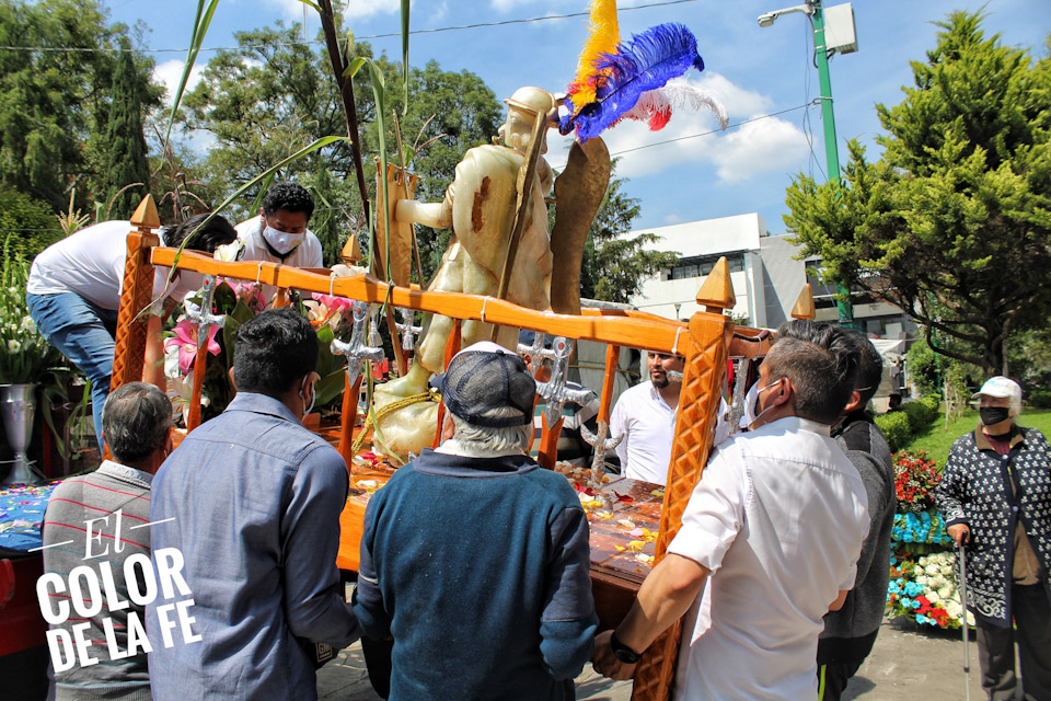 Llegó el turno del pueblo de San Pedro Cuauhximalpan, hacia donde mira el altar de la ermita. Los fieles subieron con mucha fe y colocaron a San Miguel en una carreta y emprendieron el camino de regreso en medio de una procesión acompañada por cantos, cohetones, música de viento y flores que mujeres y niños llevaban en sus manos. Era tal la alegría y la devoción del pueblo, que al llegar a un punto conocido como «La Venta», cayó una fuerte granizada que no impidió que avanzara el recorrido hasta la Parroquia de San Pedro Apóstol, donde fue colocada la pesada imagen de San Miguel, en uno de los nichos laterales, viendo en dirección a la ermita.