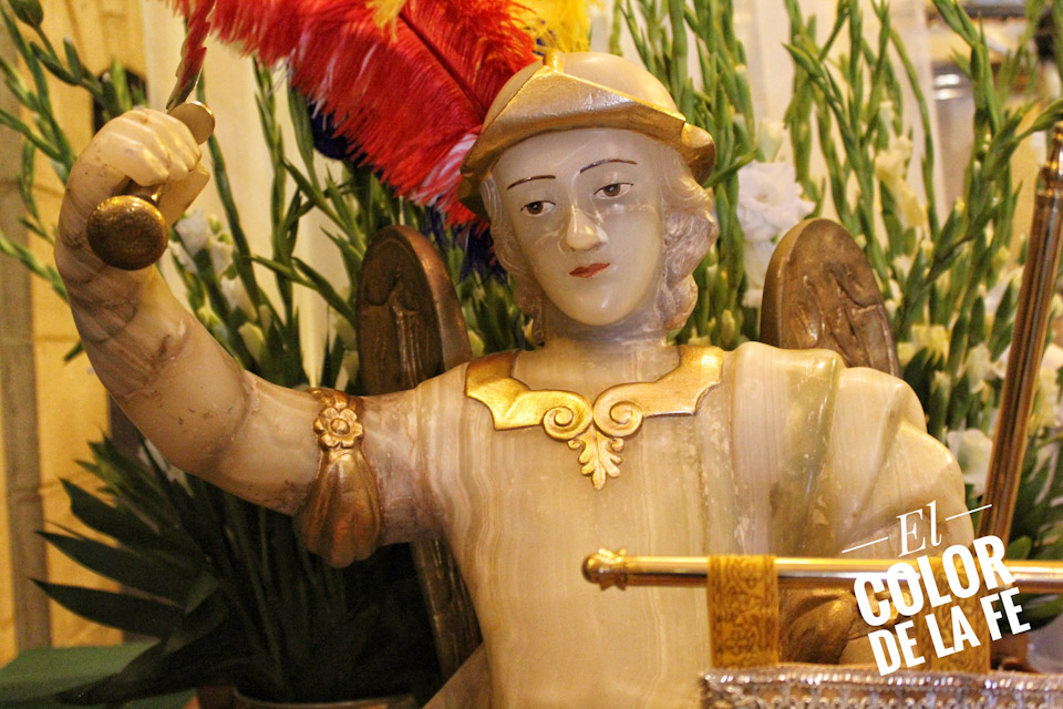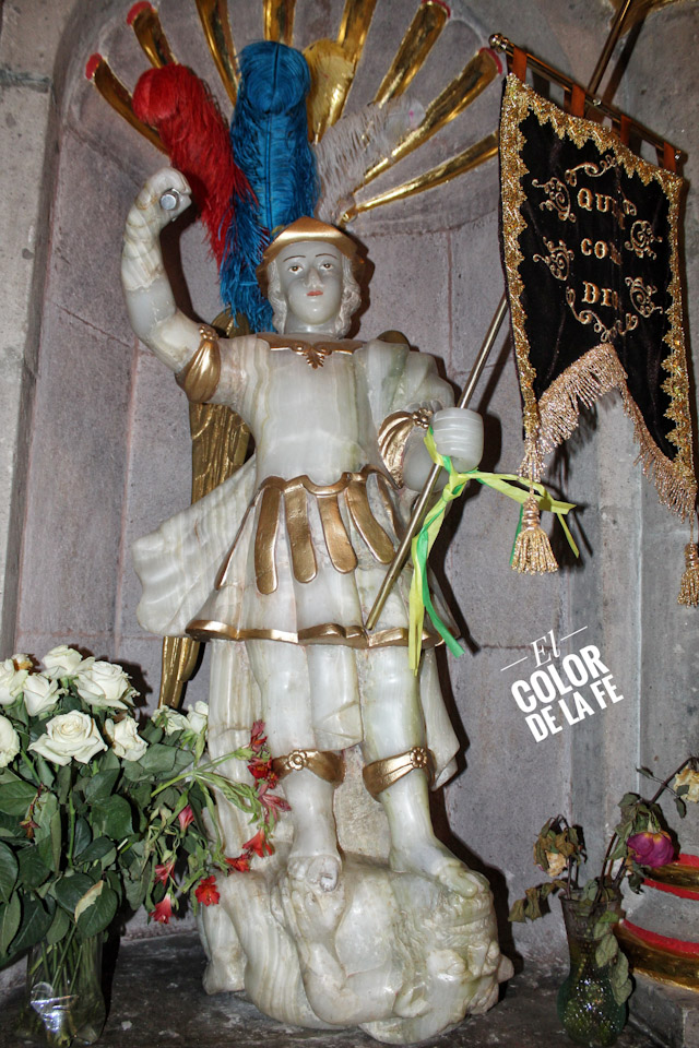 Los carmelitas vieron en la cumbre una atmósfera de recogimiento espiritual que los cautivó, y mandaron traer una imagen de San Miguel Arcángel labrada en piedra de alabastro de 1.20 centímetros de altura y un peso aproximado de 500 kilogramos, que fue entronizada en el interior de la ermita. No se sabe a ciencia cierta el origen de la escultura ni quien fue el autor de la misma, aunque se cree que pudo haberse traído desde la ciudad de Puebla, o por sus rasgos, que sea de origen europeo.