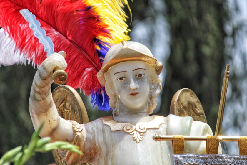 El momento más emotivo fue cuando San Miguel Arcángel salió en procesión en un recorrido breve en el que los fieles, al verlo, no pudieron contener la alegría y estallaron en vivas para honrar al Arcángel; algunas personas corrían para arrojar confetti o pétalos de flores a la camioneta, y en todo momento se respetó la indicación de no seguir el recorrido.
