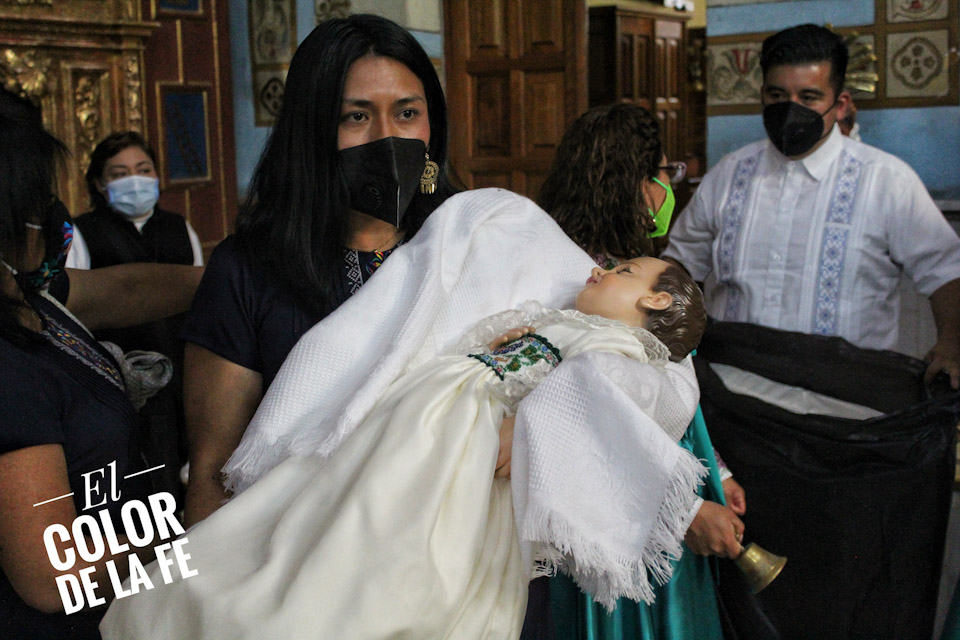 Al concluir la celebración, el Niño Dormidito fue llevado a la sacristía donde se le cambió el ropón para ser trasladado a su nuevo hogar sin mayor ceremonia que la compañía de sus posaderos y familiares cercanos.