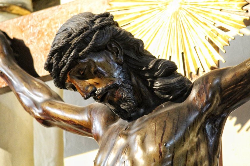 Entrando al templo, a mano izquierda, se puede observar un Cristo de color moreno que todos los días recibe la visita de fieles que murmuran oraciones implorando su favor y es conocido como El Señor del Consuelo, considerado un Cristo prodigioso gracias a un milagro acontecido delante de las personas que se encontraban presentes en ese momento.