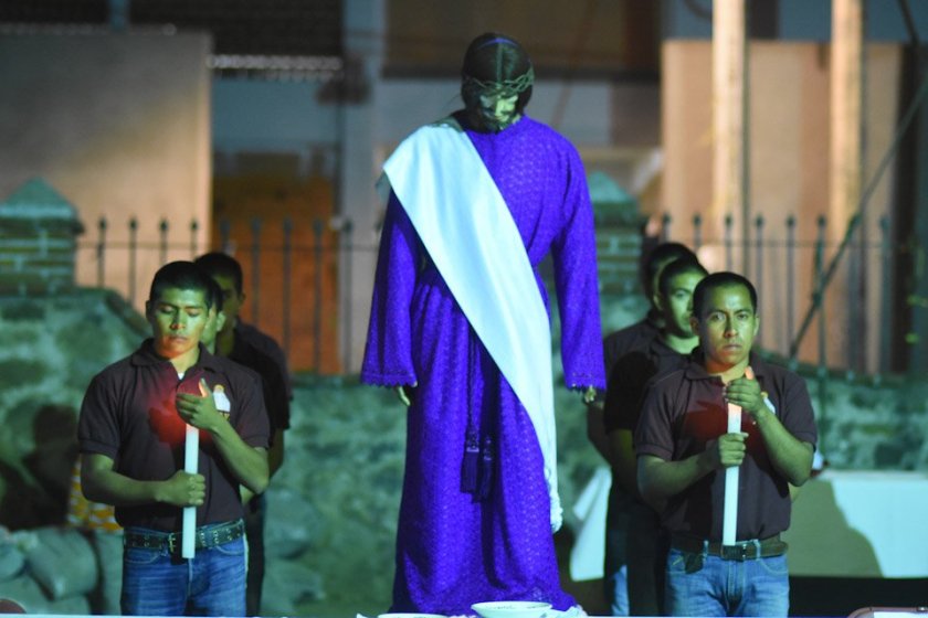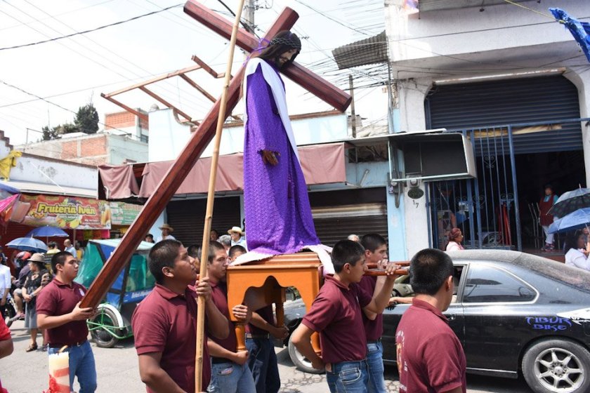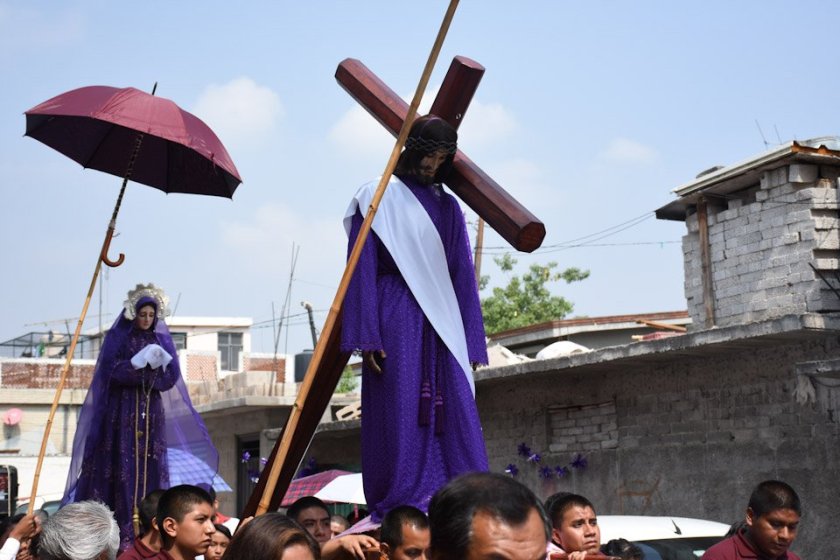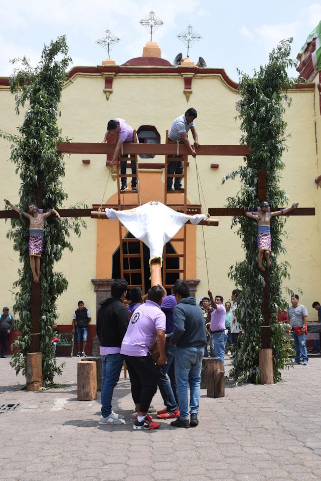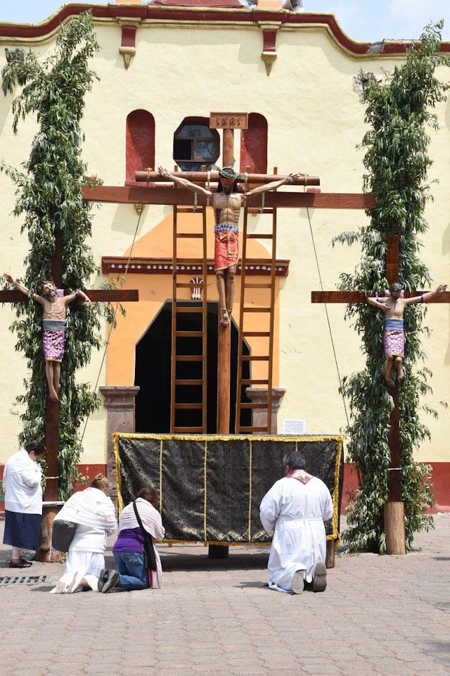 El día comienza con el tradicional Via Crucis, este parte de la parroquia de San Gregorio Magno Atlapulco y recorre catorce estaciones repartidas estratégicamente en el pueblo.