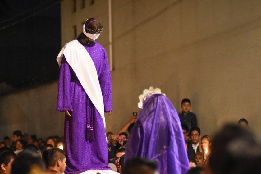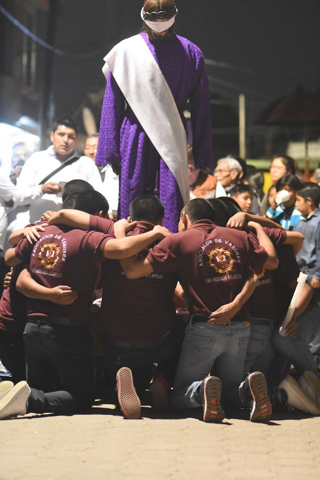 Una multitud, en su mayoría de mujeres, acompaña a la dolorosa Virgen. La Madre de Dios va marcando su amargo camino por las calles y avenidas de San Gregorio Atlapulco, se entonan alabanzas que indirectamente invitan a la reflexión interna.