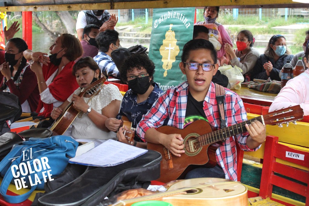 La procesión avanzó por la zona lacustre en medio de los cantos y las alabanzas de las estudiantinas que acompañaron y alegraron el recorrido. En el camino se prepararon capillas pozas en tres chinampas de diferentes familias que recibieron al Santísimo por un momento, siendo en la tercera chinampa donde un grupo de mariachis entonara La mañanitas para honrar a Jesucristo Sacramentado.