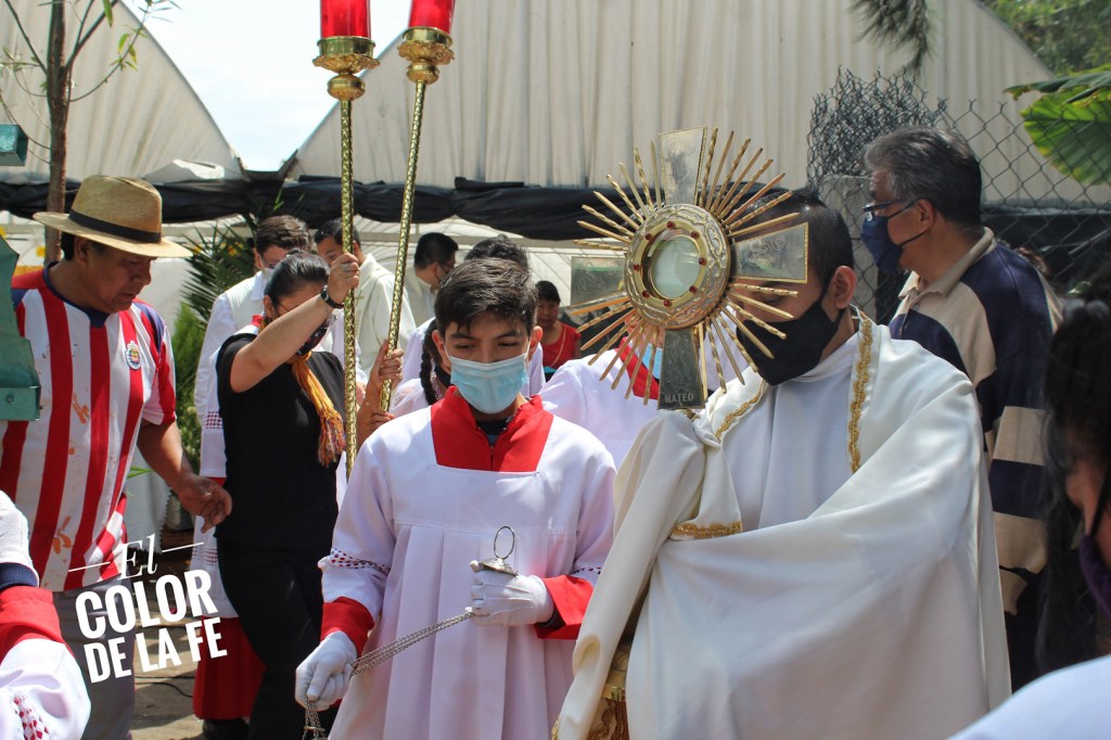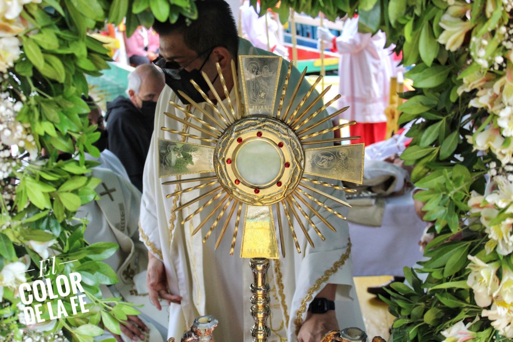En su homilía, Don Andrés recordó que la fiesta de Corpus Christi es una celebración arraigada en la cultura de los pueblos que está relacionada con caminar, peregrinar siguiendo a Jesucristo: «la vida es una camino, pero tiene una dirección y una meta, que es Nuestro Señor Jesucristo, y esto lo hemos vivido esta mañana: el dueño de la vida, el vencedor de la muerte nos ha llamado y por eso hay este sabor de alegría, de triunfo, de bendición, a pesar de las experiencias difíciles que estamos viviendo… hemos caminado porque es Cristo el que nos congrega y le da pauta a nuestros pasos».