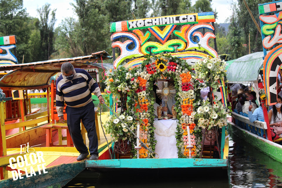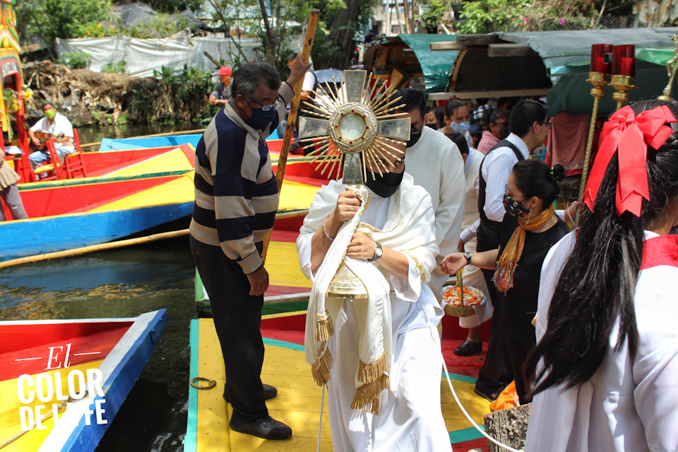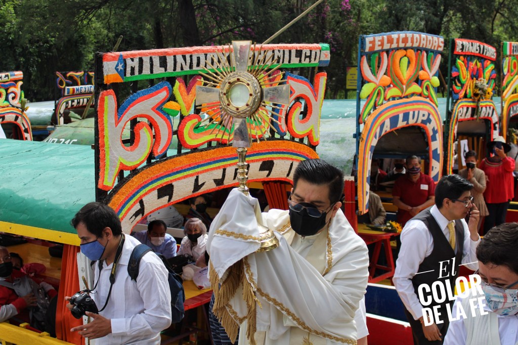 Con motivo de la Solemnidad de Corpus Christi, tuvo lugar una procesión festiva con el Santísimo Sacramento por los canales de la zona lacustre de Xochimilco, organizada por el Vicario Gabriel Olmedo y la Pastoral Juvenil de la Catedral de Xochimilco. La cita fue a las 9:00 de la mañana en el Embarcadero Caltongo, en donde se dieron cita miembros de los diferentes grupos parroquiales, vida consagrada y algunos fieles, esto debido al aforo limitado por la contingencia sanitaria.
