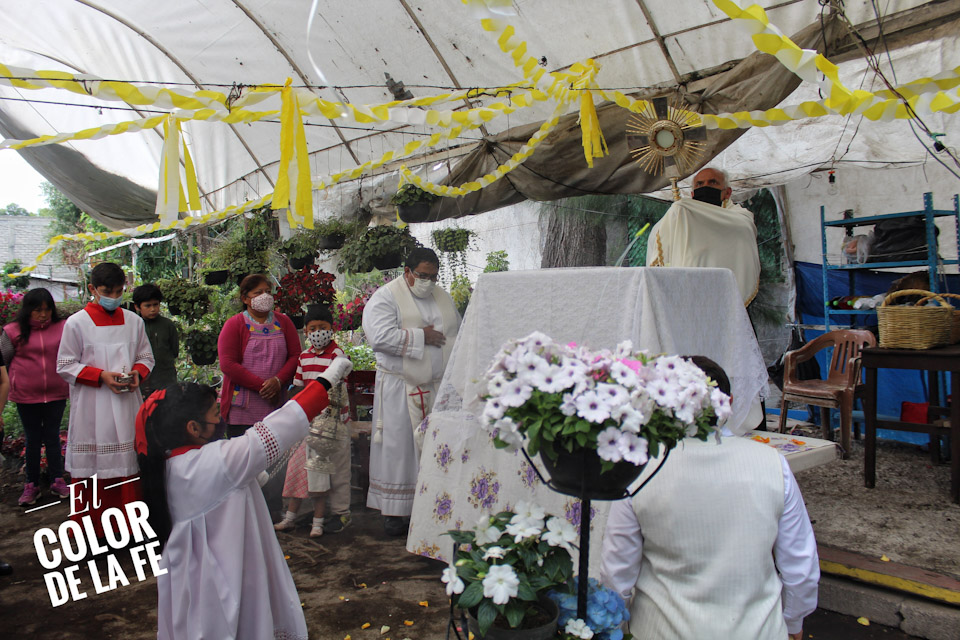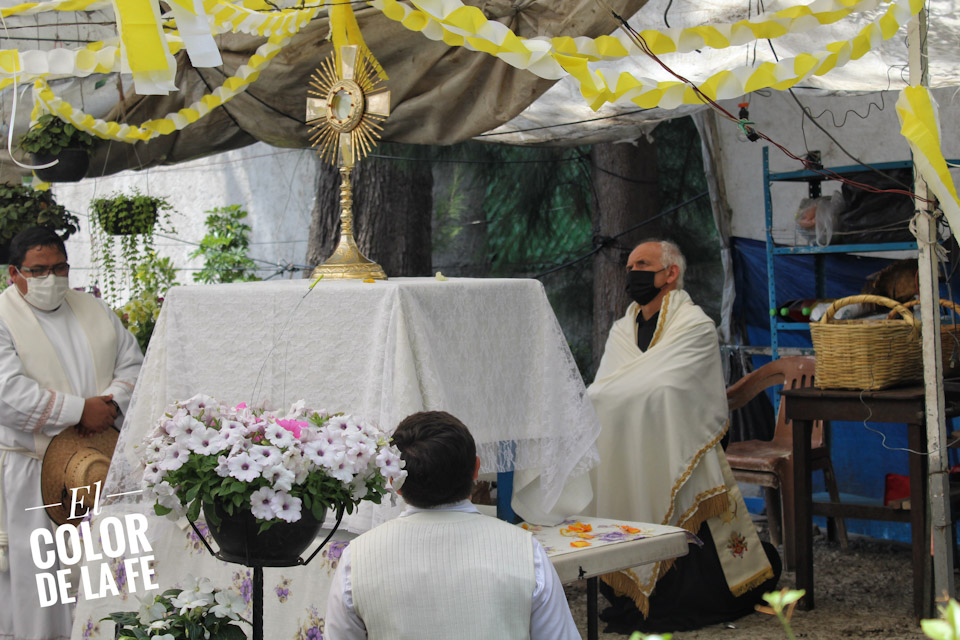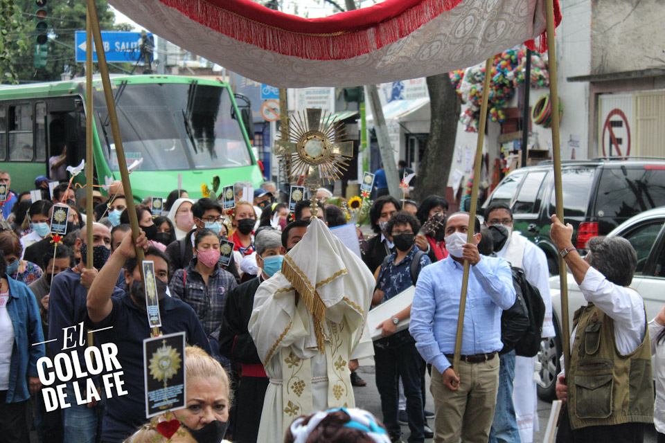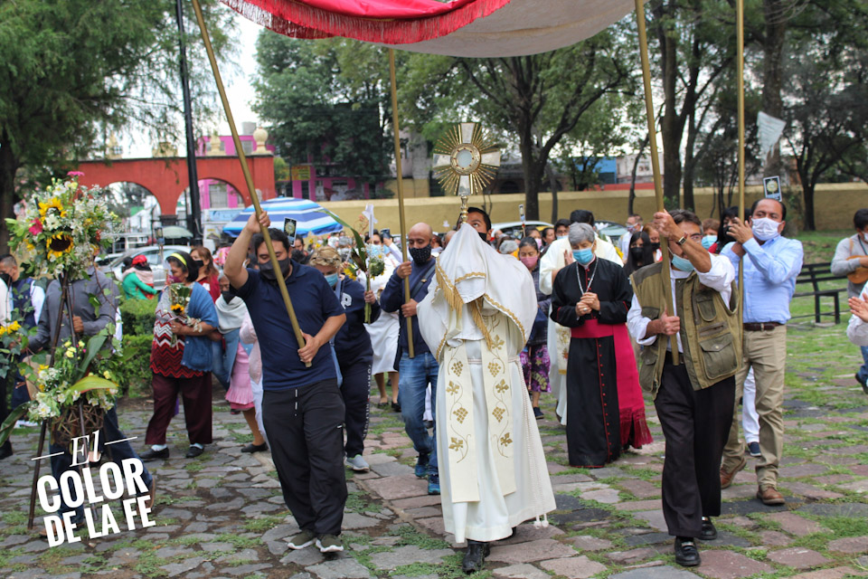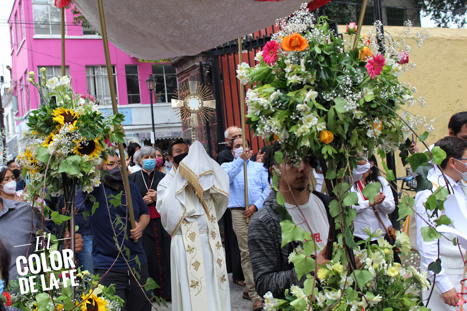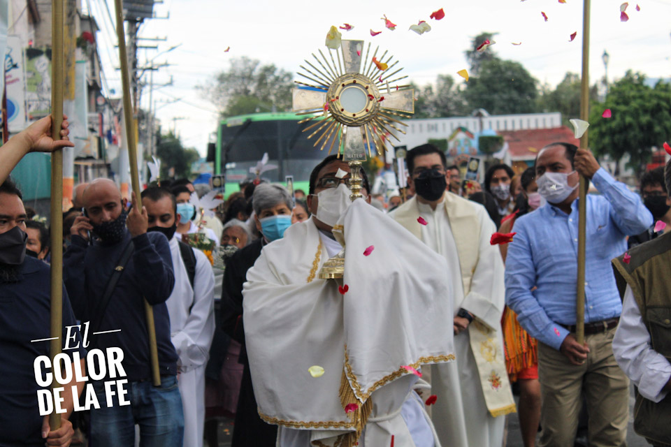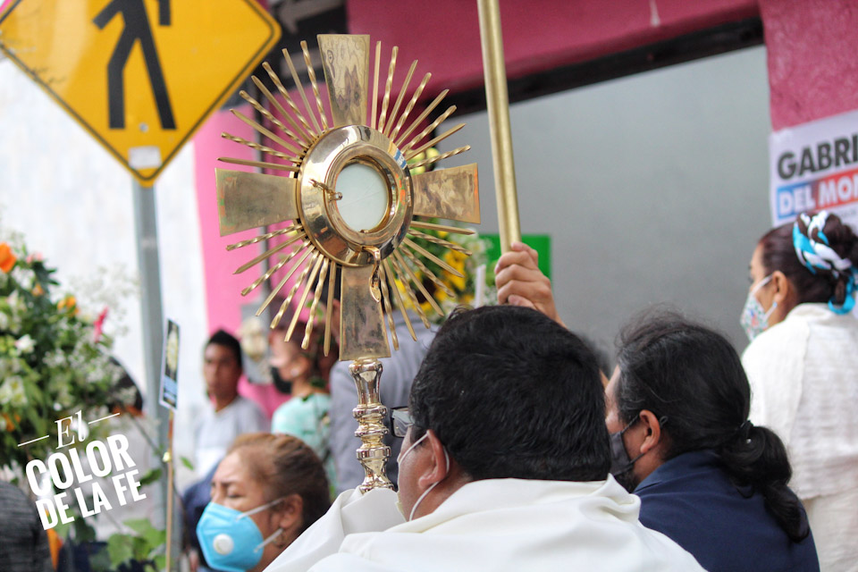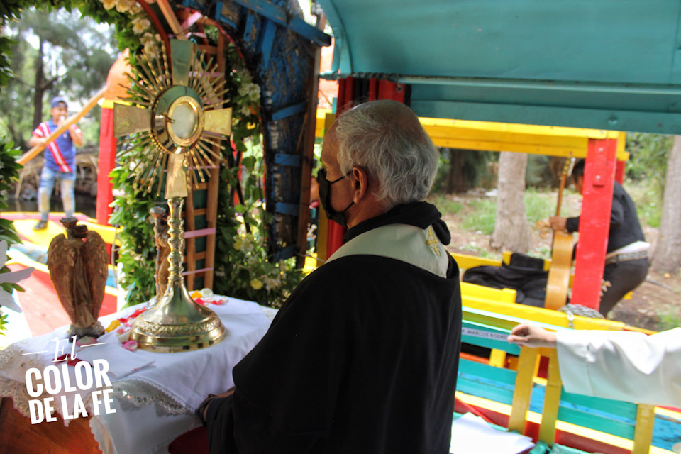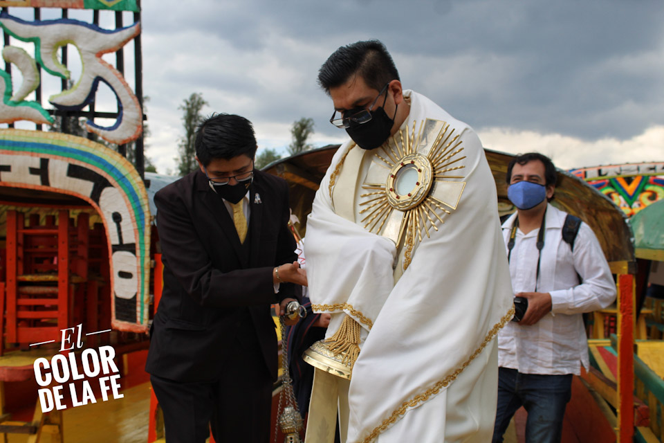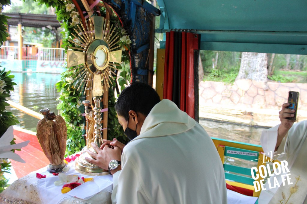La procesión fue presidida por el Párroco Marcos Rodríguez, el Vicario Gabriel Olmedo, el Padre Rubén y Fray José Luis de los Siervos de María, que acompañaron al Santísimo Sacramento en una trajinera que fue ornamentada en su portada con un arreglo de flores, elemento natural que distingue al pueblo de Xochimilco.
