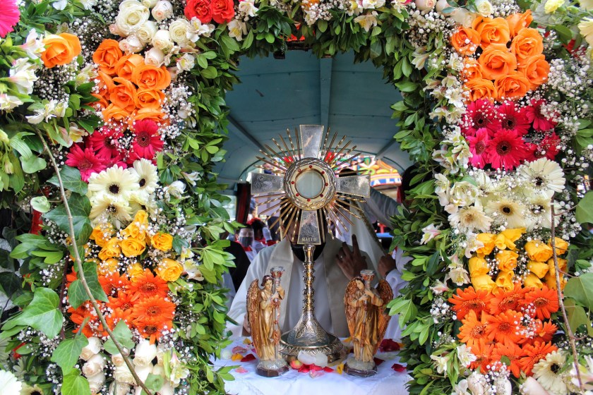 La procesión fue presidida por el Párroco Marcos Rodríguez, el Vicario Gabriel Olmedo, el Padre Rubén y Fray José Luis de los Siervos de María, que acompañaron al Santísimo Sacramento en una trajinera que fue ornamentada en su portada con un arreglo de flores, elemento natural que distingue al pueblo de Xochimilco.