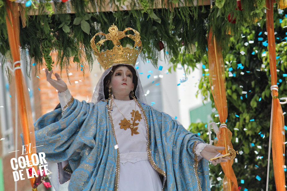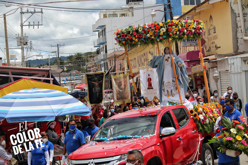La procesión se llevó a cabo con respeto y orden, solo pudieron seguir el contingente la Honorable Comisión de Festejos y los cargadores, que son los únicos que tienen el privilegio de cargar a la Madre Santísima el día de su fiesta.