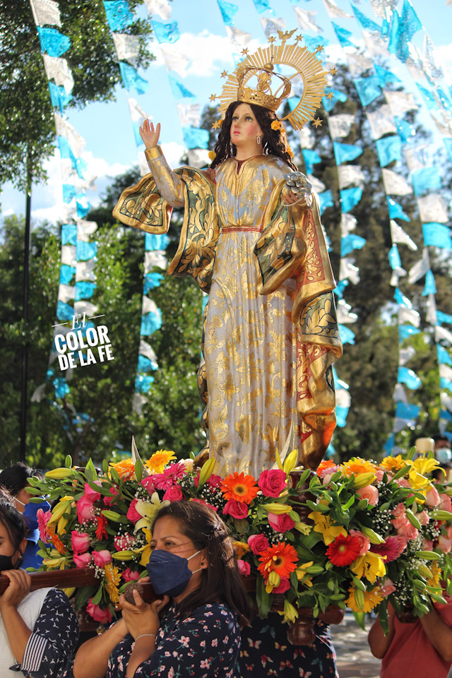 Bellamente ataviada, la Virgen María en su Asunción volvió a recorrer las calles de su amado Nochixtlán, para bendecir y consolar a sus hijos que la vieron pasar desde la puerta de sus casas, ventanas y balcones, colocando sencillos altares y arrojando pétalos de flores y papelitos de colores celebrando el paso de la Reina triunfadora, que se detuvo brevemente frente a las capillas, donde se realizaba una oración para encomendar a las comunidades a la intercesión de la Señora del Cielo.