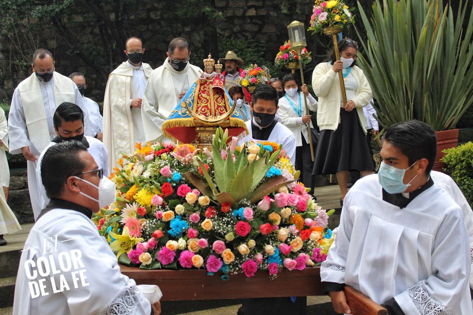 El programa de actividades comenzó el pasado 30 de agosto con la bendición y el cambio de ajuar que este año 2021 engalanó la pequeña imagen de la Virgen María que llegó a tierras mexicanas hace más de 500 años y que fue testigo de los acontecimientos que precedieron la caída de Tenochtitlan.
