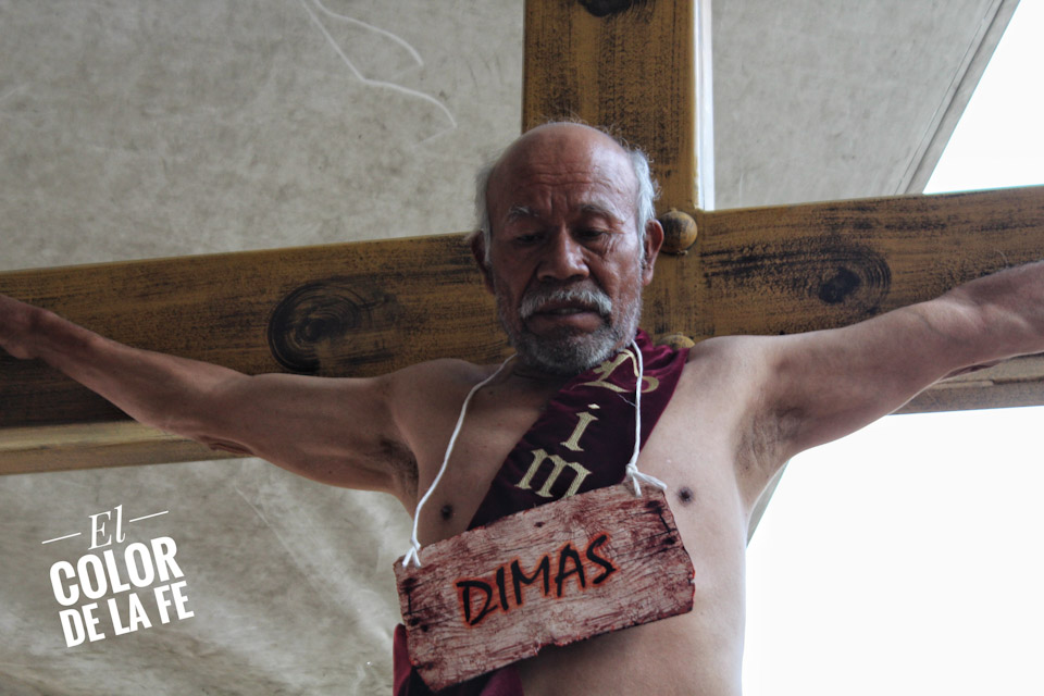 «…mi abuelo se metía en la parte de abajo de la base del Nazareno para representar la caída, se ponía en cuclillas y sobre la espalda cargaba al Nazareno y quitaba el dispositivo para que bajara y yo me metía con él para aguantar el peso en lo que se hacía el rezo y se representaba la caída».