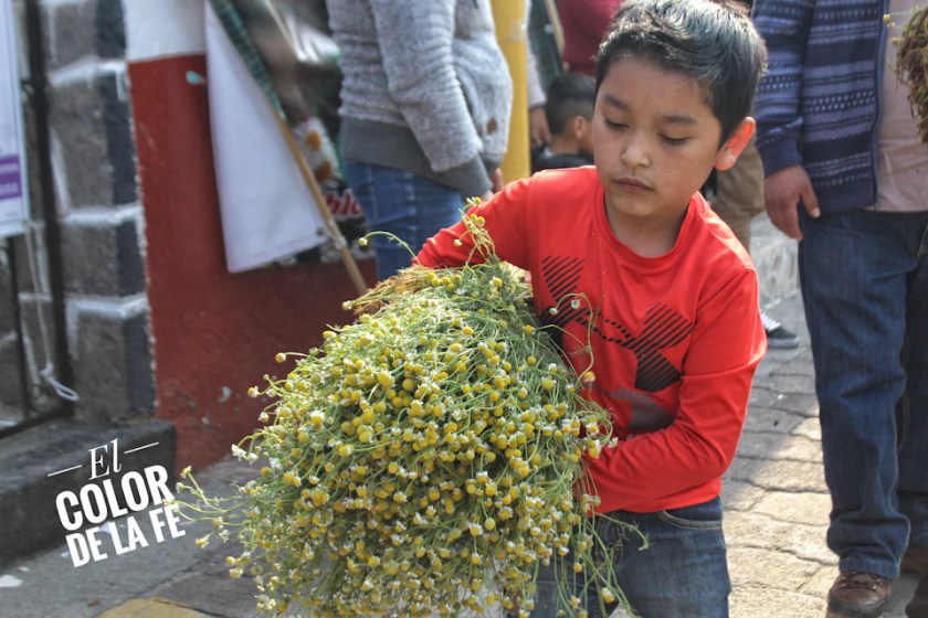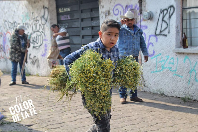 «El pueblo de San Pablo Chimalpa tiene por costumbre en su festividad del Viernes de Dolores dar manzanilla a los fieles a cambio de una limosna… el Señor Marcelino Palma es el que cultiva la manzanilla y se le ha venido a comprar a él, pero como ya falleció, ahora sus familiares, yernos, nietos, son los que proveen a los señores fiscales de Chimalpa esa manzanilla», explicó el señor Hermilo Romero Sánchez, quién desde hace más de 50 años participa como voluntario del traslado de la manzanilla, además de haber ejercido como fiscal.