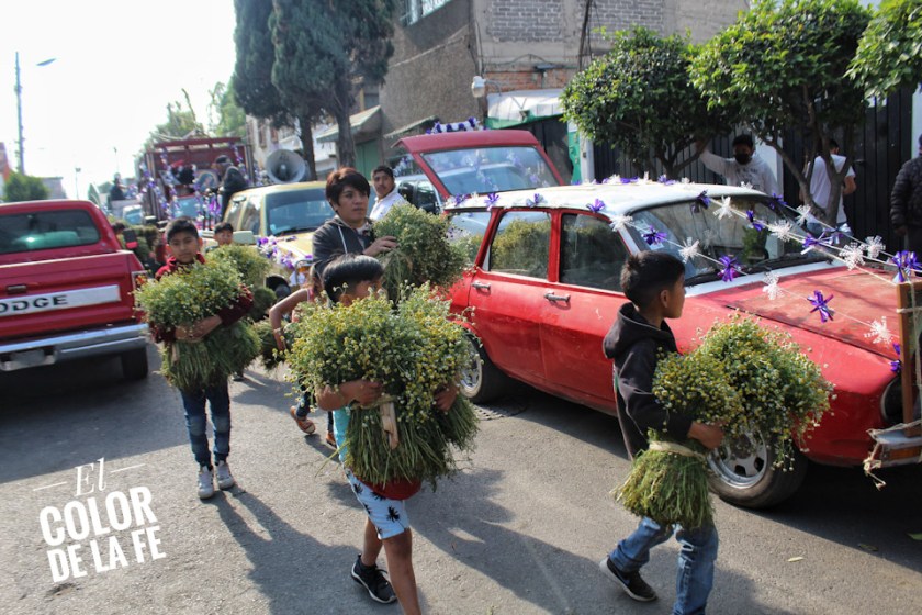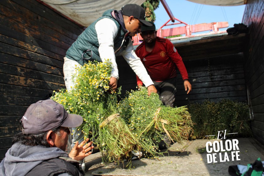 Concluida la entrega de manzanilla, se realiza un pequeño almuerzo, para después, cargar cuidadosamente las camionetas y automóviles con los manojos de manzanilla. Tras agradecer a los familiares de don Marcelino Palma, las camionetas salen de manera ordenada y en caravana para iniciar su camino de regreso hasta Chimalpa, donde serán recibidos en la entrada del pueblo junto con las demás ofrendas que se llevarán a los pies de la Virgen de los Dolores, como las cañas y las vestimentas de las imágenes religiosas que participarán durante la Semana Santa.