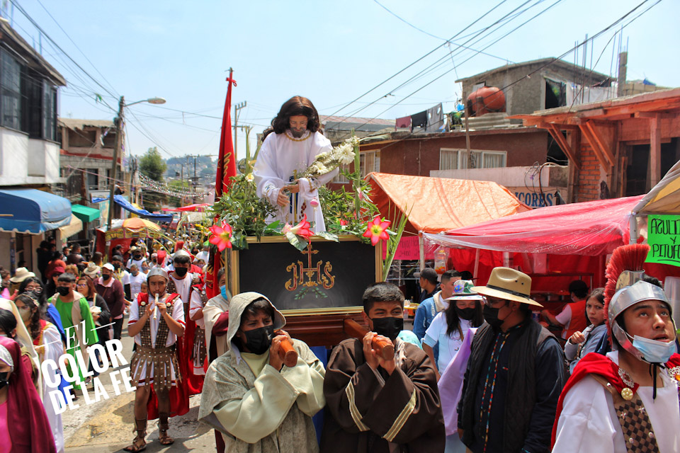 «En la década de los ochenta surge un grupo llamado Tres Cruces en el Calvario y organizan la representación de la Vida, Pasión y Muerte de Cristo… sale la procesión con una imagen de Jesús y vienen los jóvenes que hacen la representación, tocan flautas y tambores como si fueran romanos y se hace una misa en la explanada porque viene mucha gente de otros lugares y la iglesia y el atrio es insuficiente», comenta el Maestro Ricardo.