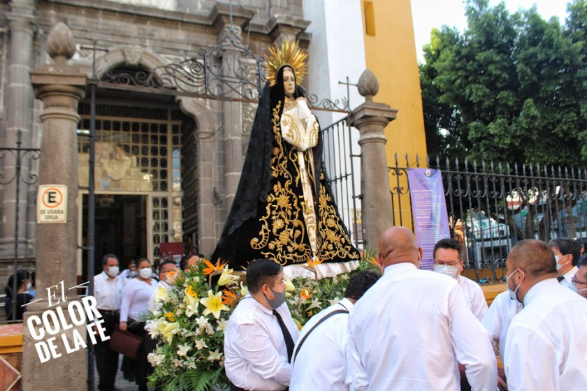La imagen de la Virgen de la Soledad también participaba en la Procesión de Viernes Santo de la Angelópolis, por lo que se conformó una cofradía de damas nobles, quienes ofrecían su esfuerzo para poder alcanzar un favor del cielo y con esto, prestaban sus joyas a la imagen de la Virgen para que las luciera por ellas en ese día.
