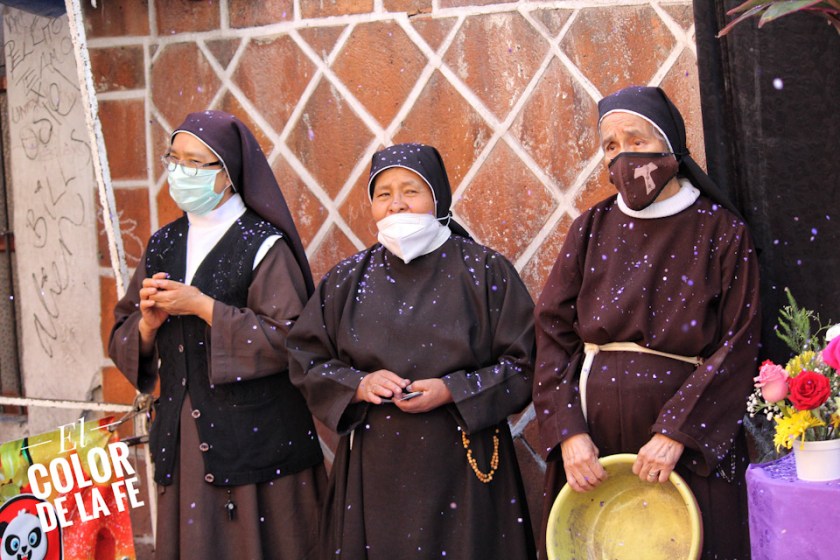 «Hay un cuadro a la entrada del templo, obra de Pablo José Talavera, que retrata la solemne procesión en donde la imagen fue trasladada desde catedral hasta el actual templo de la Soledad acompañado de las primeras cuatro religiosas de claustro, carmelitas que custodiarían la imagen… fue una fecha tan solemne que en la gran pintura mural aparece el Virrey de la Nueva España… no porque necesariamente haya asistido el Virrey, pero los grandes acontecimientos debían estar sancionados por la autoridad más alta, en este caso sería el Virrey», explica el padre Miguel Arcángel.