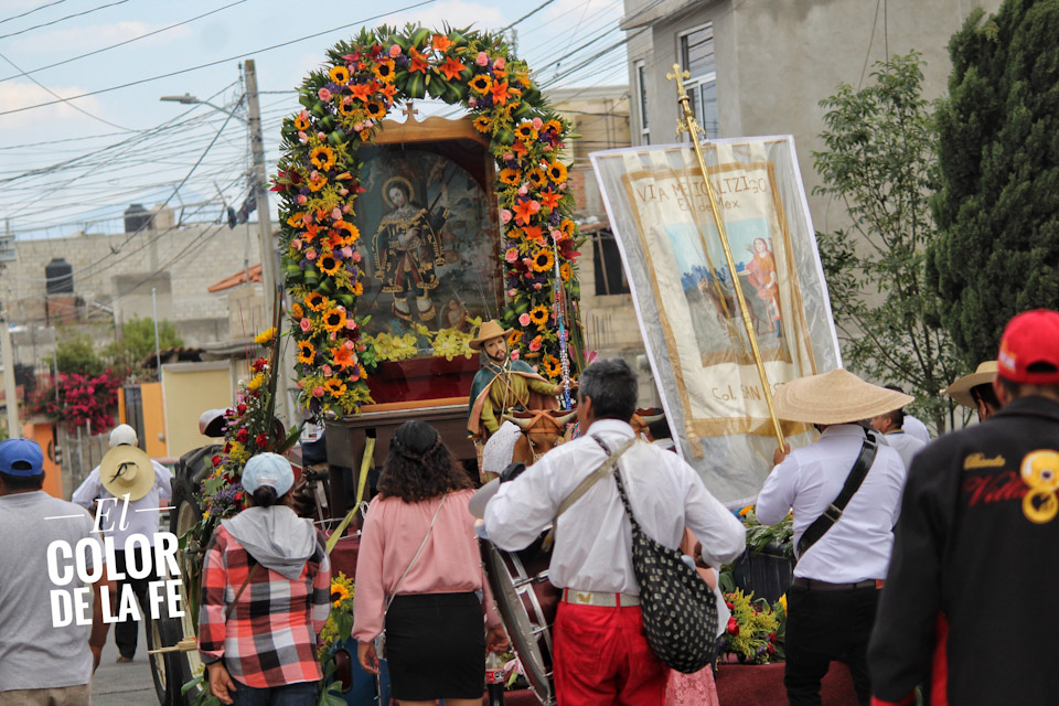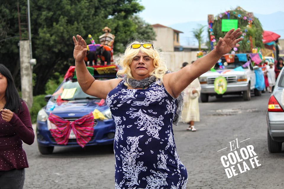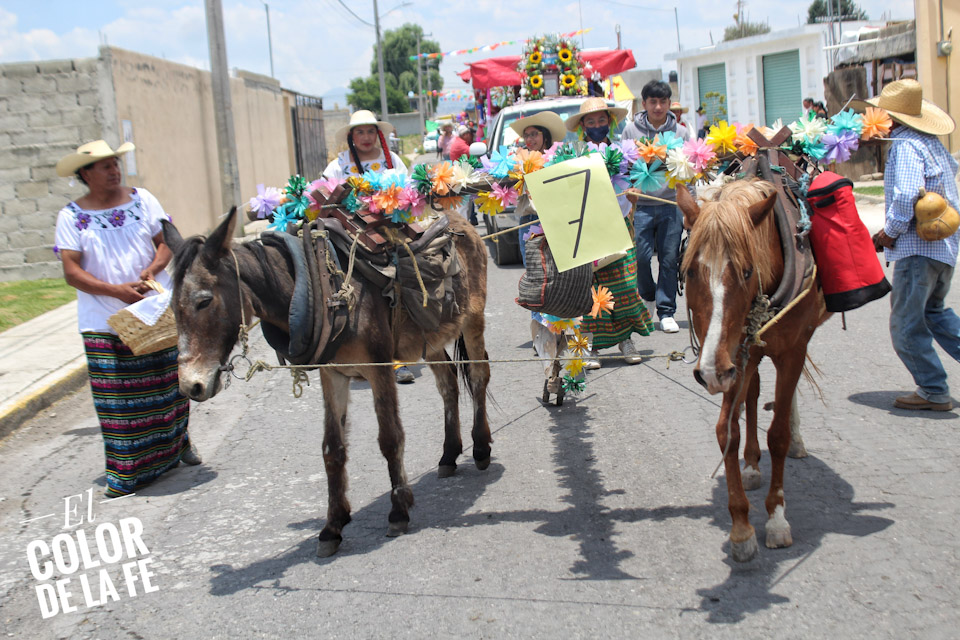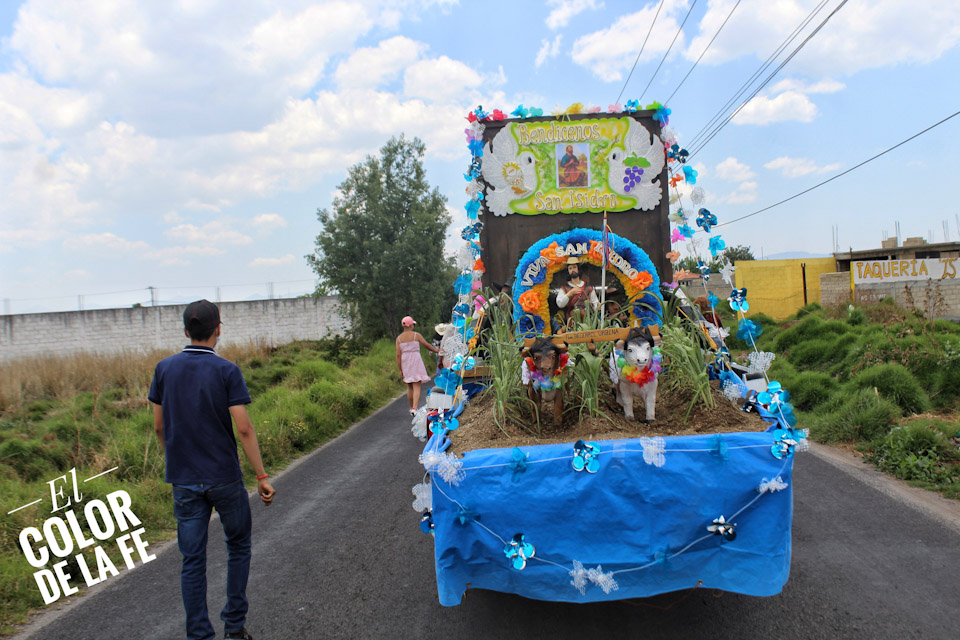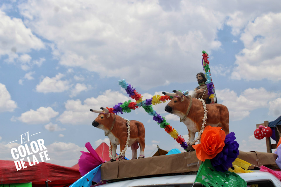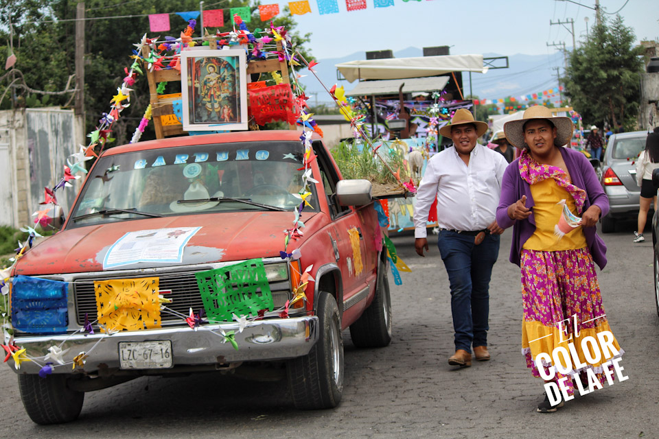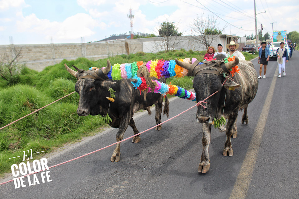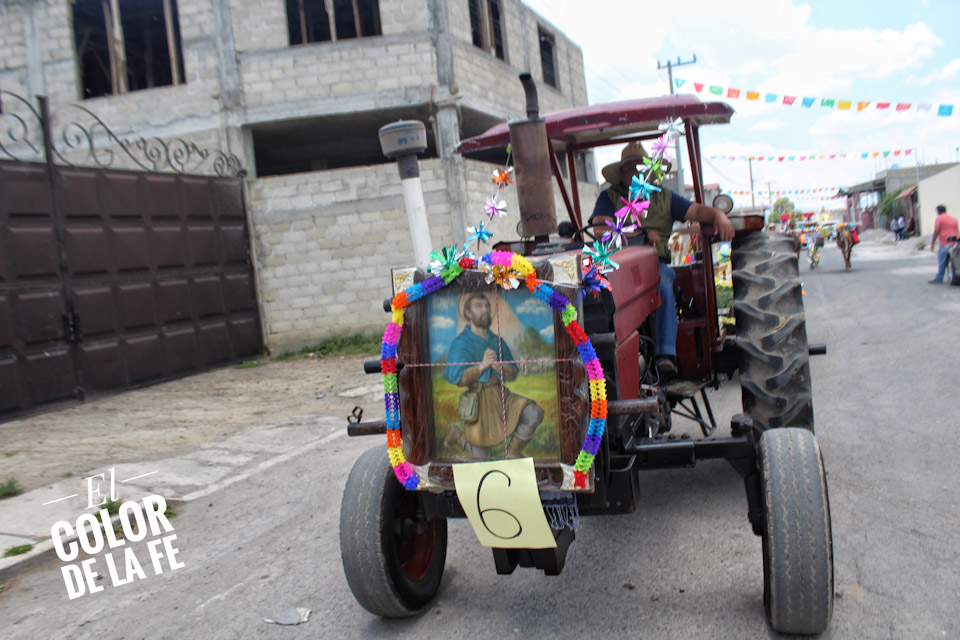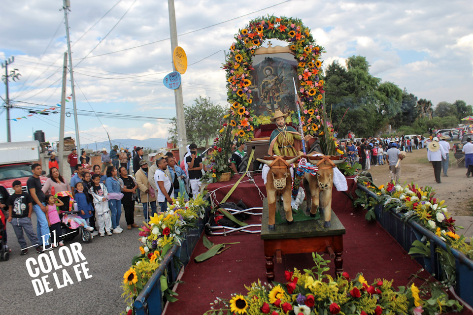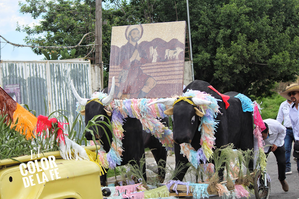 Concluida la bendición, inicia el recorrido por las calles de la colonia para salir rumbo al centro del pueblo en medio de un ambiente festivo amenizado por la música, el baile y el colorido de las yuntas, tractores y carros alegóricos que enmarcan el recorrido, mientras las diferentes cuadrillas regalan dulces, fruta, pan, flores o comparten un trago fuerte con las personas que se enfilan a la orilla de las calles para ver pasar la caravana en la que destaca la imagen de San Isidro labrador.