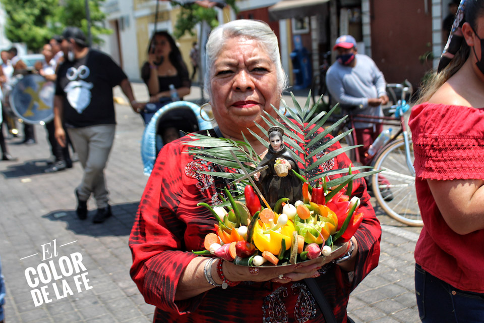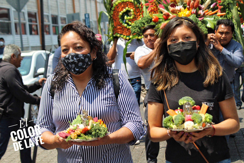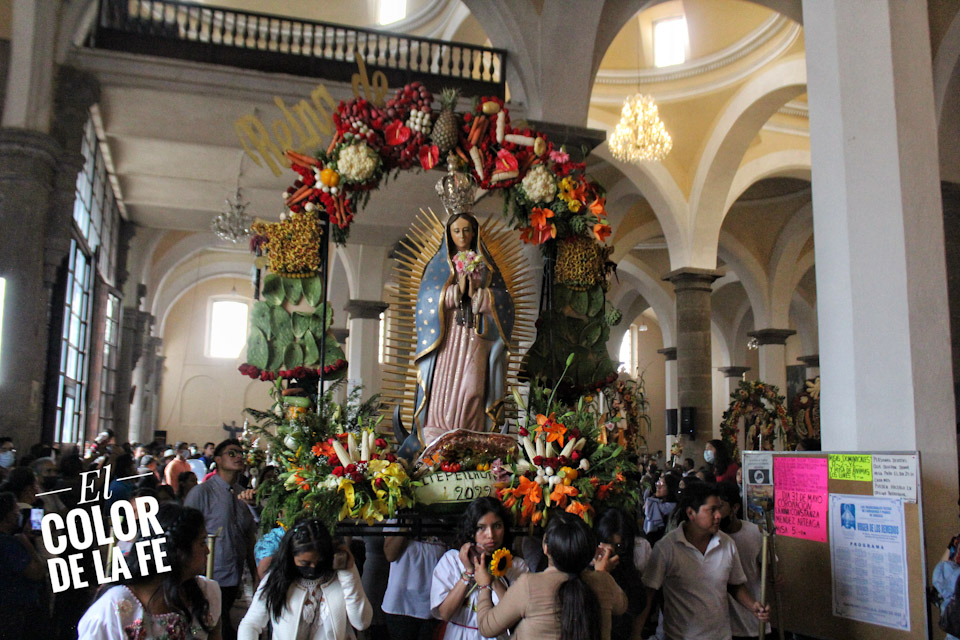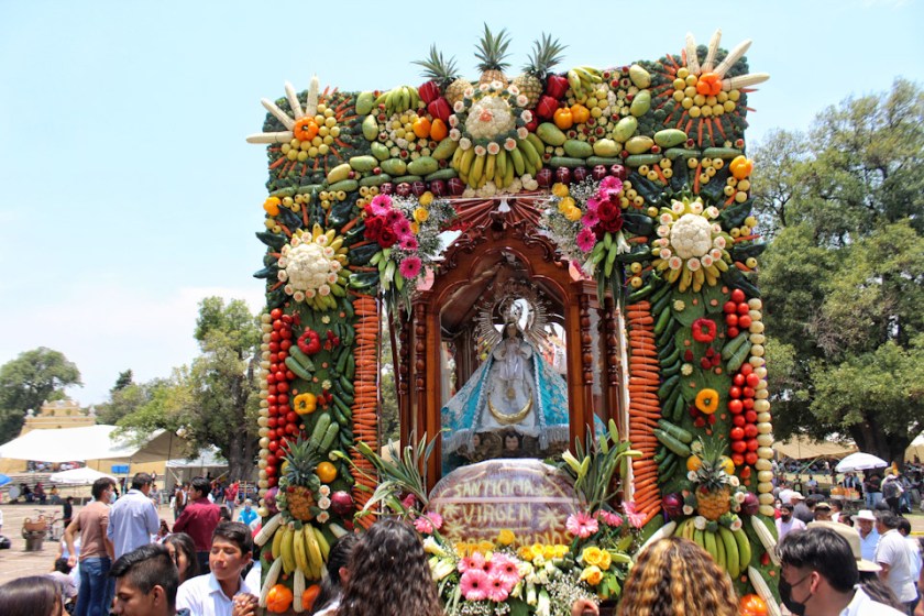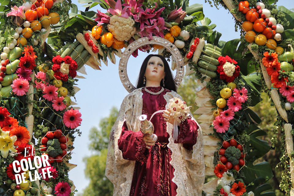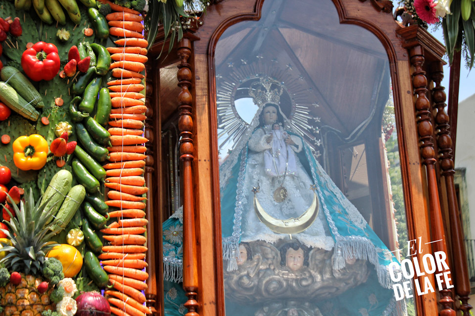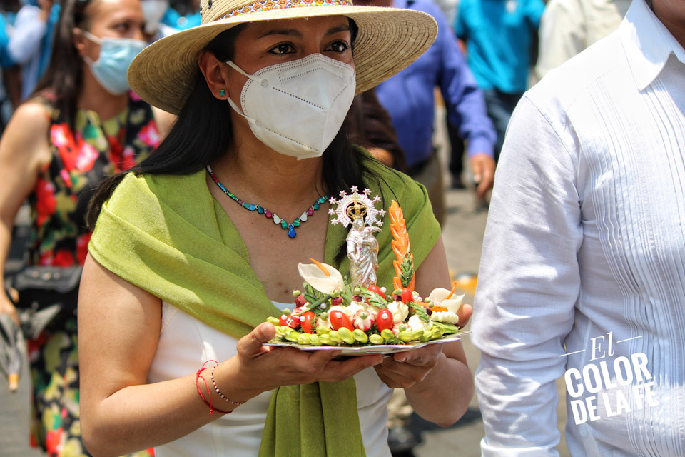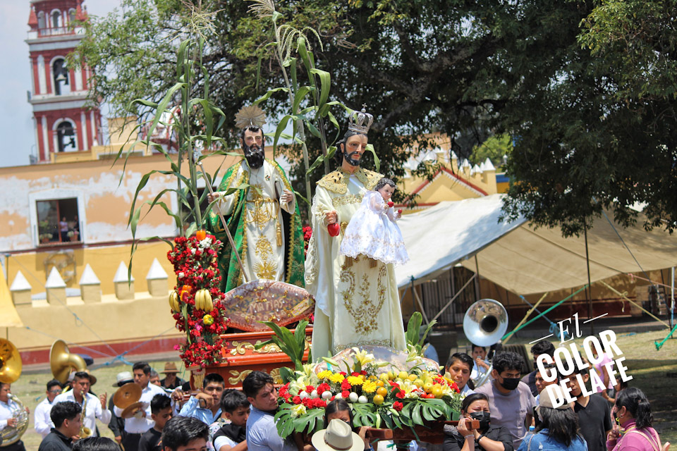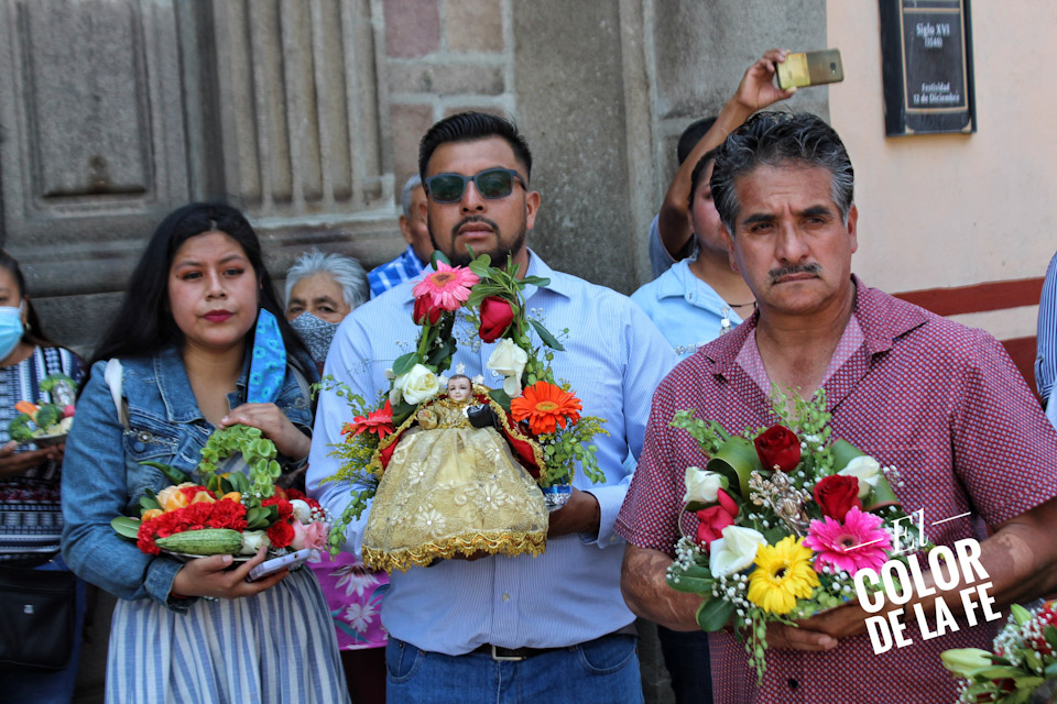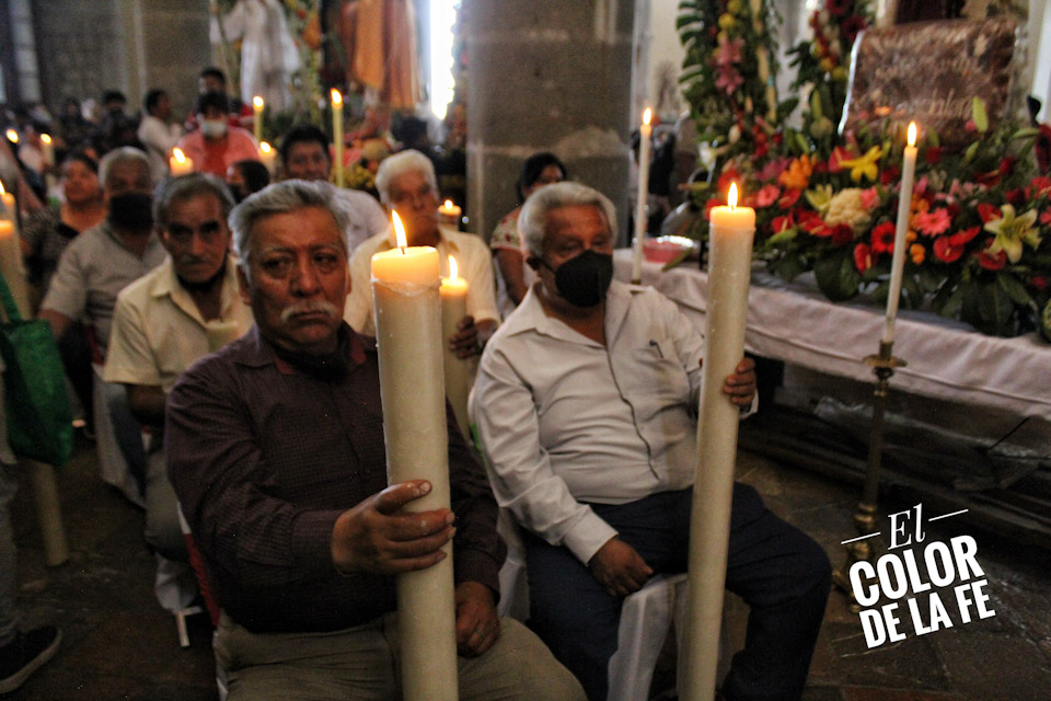 Entre vivas, porras, aplausos y música, las imágenes llegan a la Capilla Real de Naturales y en orden de su fundación, comienzan a entrar los patrones de los barrios con sus respectivos mayordomos quienes portan cirios y bastones de mando o demanditas, bellamente adornadas con flores, frutas y legumbres, o listones de colores, para ser participes de la santa misa y agradecer a Dios por los primeros frutos y pedir por una cosecha abundante.