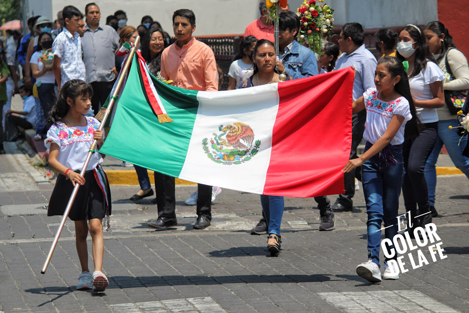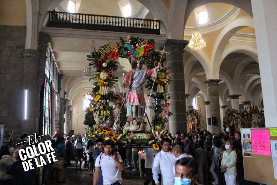 Al final de la celebración eucarística se realiza una procesión en el interior del templo encabezada por San Gabriel Arcángel, la Virgen de Guadalupe, la Virgen de los Remedios y San Pedro de las Ánimas, mientras que el resto de las mayordomías se suma al canto de la Salve desde sus lugares.