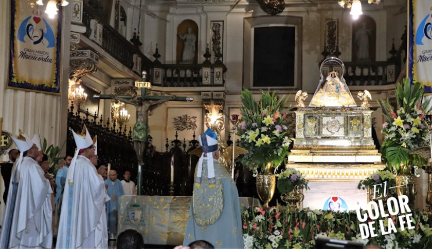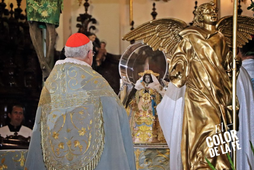 Después de la comunión general, puestos de rodillas ante la imagen de la Virgen Pacificadora, se recitó la oración de Renovación del Patrocinio, este año, con tintes de la apertura de la gran Misión de la Misericordia promulgada durante dicha celebración, al termino, dio inicio la procesión hacia la iglesia Catedral, recordando con ello la costumbre novogalaica en que la Generala era conducida hasta la iglesia monacal de Santa Teresa para de ahí partir a la mañana siguiente ataviada de peregrina, por las religiosas carmelitas hasta su santuario. Los celebrantes portando arandelas, y los sacerdotes llevando las andas sobre sus hombros, fue trasladada la Virgen en un cortejo que lucía con toda solemnidad hasta la iglesia matriz, cuyos campanarios al reconocer a lo lejos su silueta comenzaron a sonar sus antiguos bronces, mientras las plazas aledañas contenían a los fieles que emocionados presenciaban el acontecimiento.