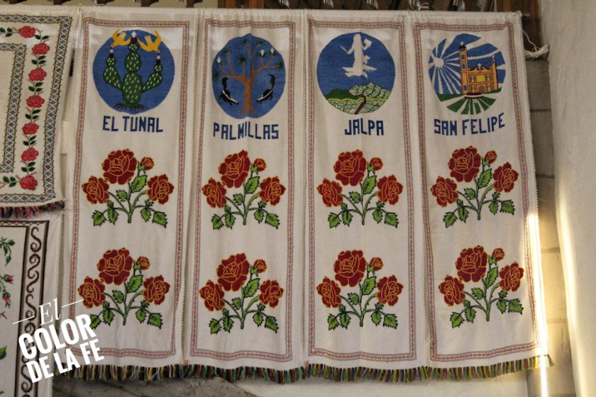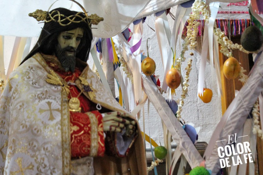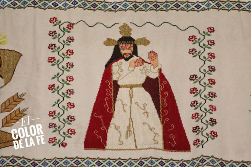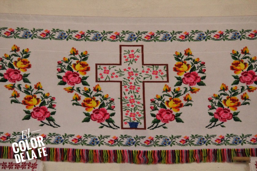 Las servilletas y pendones que adornan el templo son bordados por personas que pertenecen a diferentes comunidades que se concentran en el municipio y quienes las donan las entregan bellamente decoradas con flores, a modo de ofrenda para el Cristo Milagroso.
